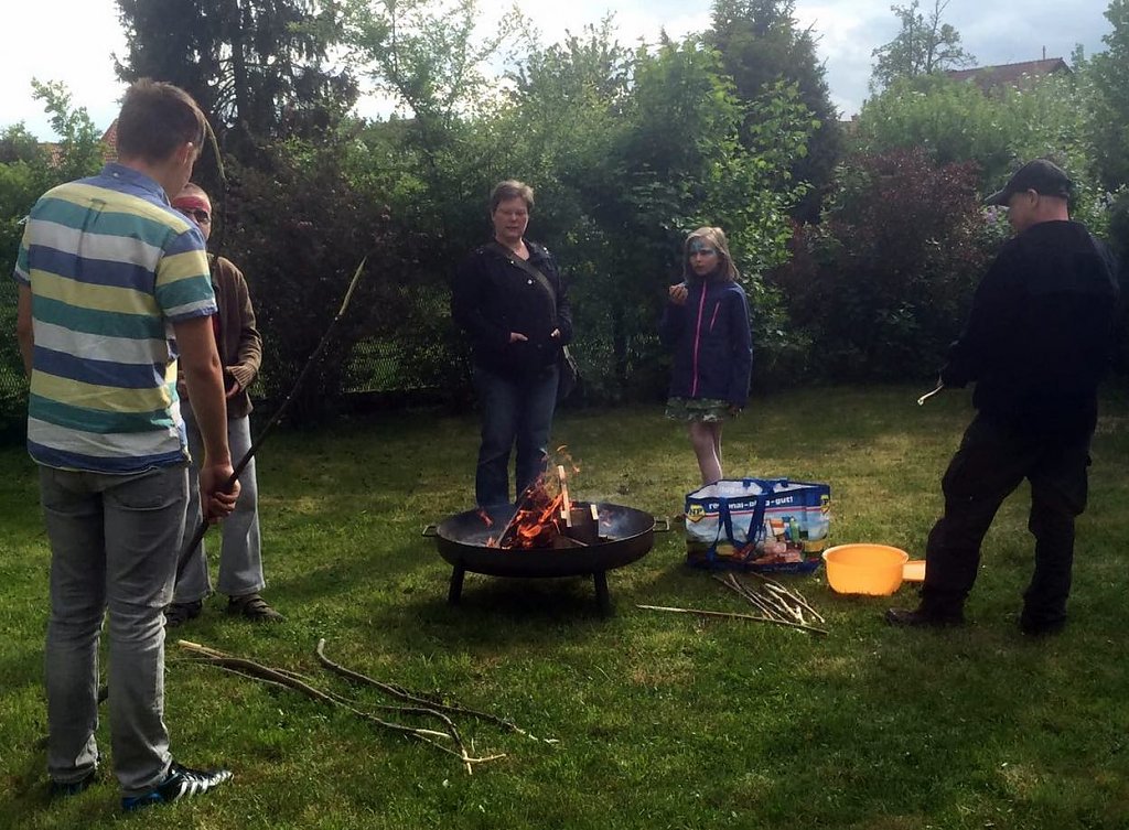 Stockbrotbacken mit den Pfadfindern, toben auf dem Hüpfkissen, Pfeifen schnitzen, eine Bastelstraße organisiert vom Förderverein des Kindergartens "Kleine Störche" und Kinderschminken wurde den Familien geboten.