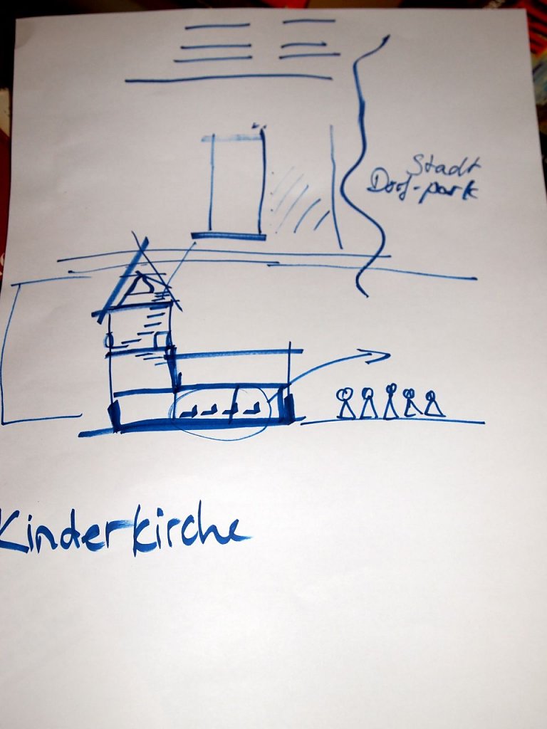 Eine zweite Gruppe wollte die Kirche gern für Kinder umbauen. Vielleicht ein paar Bänke herausnehmen, damit die Kinder mehr Bewegungsmöglichkeit hätten. Unterricht in Religion und Ethik könnte dort stattfinden. Und auch die anderen Gruppen der Kirchengemeinde könnten diesen neu entstandenen Raum nutzen. Pfarrer Heizmann wies darauf hin, dass ein Umbau gar nicht notwenig sei. Hat Wülfingerode doch einen mobilen Altar, der unters Kreuz gerückt doch gleich einen schönen Raum frei gibt.