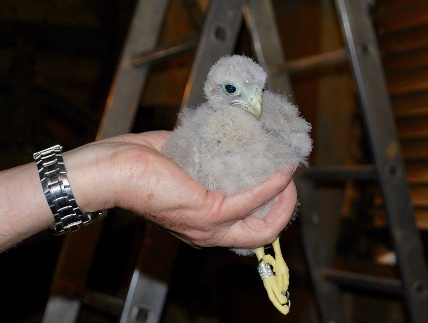 Im letzten Jahr installierte der NABU Obereichsfeld zusammen mit der Kirchgemeinde Sankt Georg in Wallrode drei Nistkästen für Turmfalke, Dohle oder Schleiereule. Bereits in diesem Jahr brütet ein Turmfalkenpaar und zieht drei Junge groß. Hans-Bernd Hartmann von der Eichsfelder Fachgruppe Ornithologie beringte die Drillinge im Rahmen der Erfassung und Beringung der Eichsfelder Turmfalkenbestände und freute sich über den raschen Einzug in die neu geschaffenen Nistmöglichkeit.
