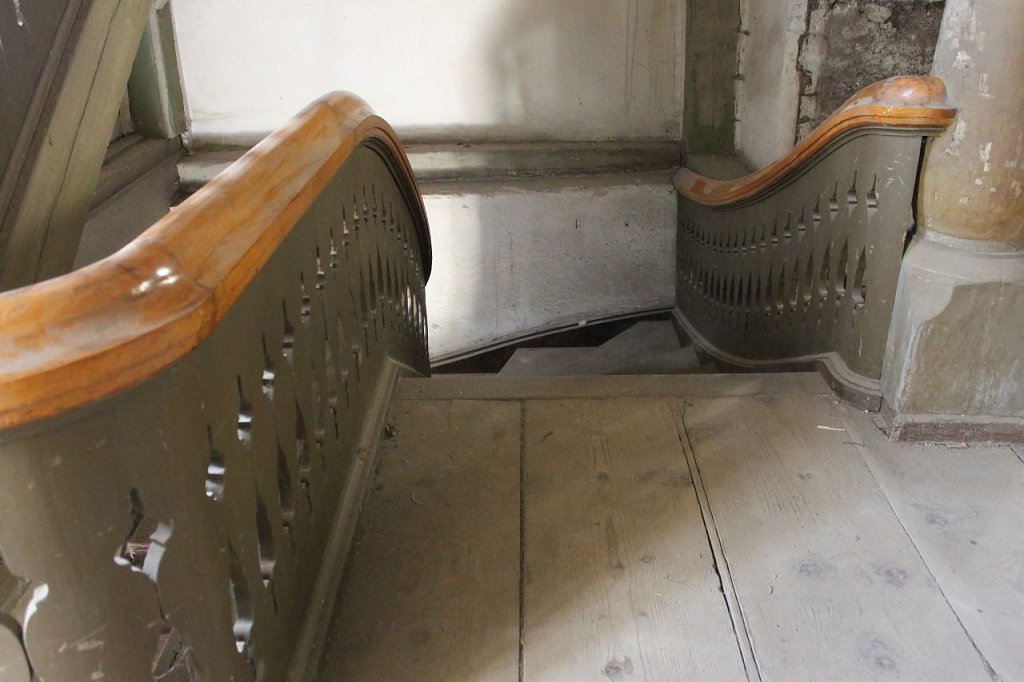Die historische Kirchentreppe aus dem Jahre 1695 ist nach dem Umbau unserer Jugendkirche noch ohne Besitzer. Die mehrläufige Holztreppe diente über drei Jahrhunderte lang als Aufgang zur unteren Kirchenempore und muss jetzt dem neuen Haupteingang weichen. Damit die Bauarbeiten zügig voran gehen können, muss diese Treppe jetzt ausgebaut und abtransportiert werden.