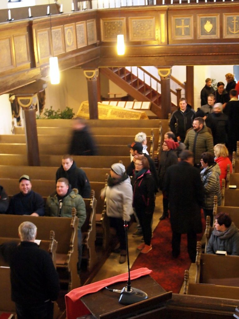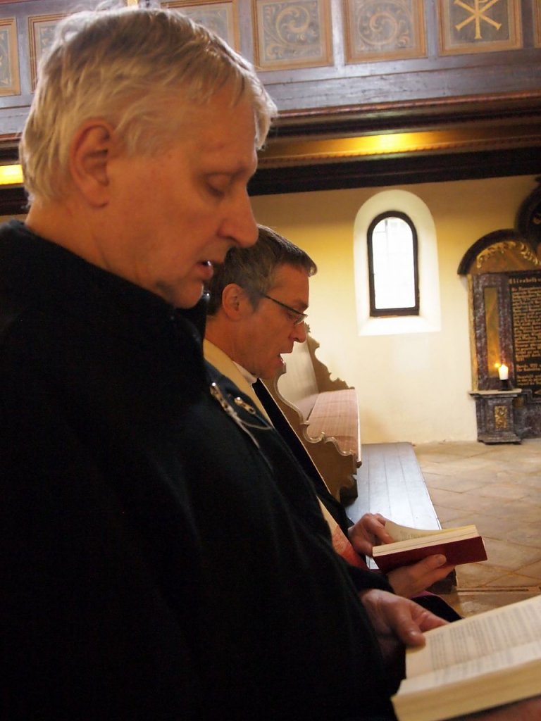 Wenn Montagmittag um 13 Uhr die Glocken für einen Gottesdienst läuten, dann ist das schon eine merkwürdige Zeit. Nicht für die Wülfingeröder Kirmesgesellschaft – für sie hat der Montag in der Kirche Tradition. Lausig kalt ist es in der St.-Elisabeth-Kirche, als die Gesellschaft einzieht. Doch sie scheinen es nicht zu merken. Über 30 Gottesdienstbesucher haben sich eingefunden – an einem Montagmittag! Die wenigsten von ihnen sind Kirchenmitglieder, aber Tradition ist eben Tradition. Feiern können sie gut in Wülfingerode. Die Feststimmung liegt noch in der Luft. Vielleicht ein bisschen müde sind sie nun, der Kreislauf arbeitet noch auf Sparflamme. Doch sie sind da.