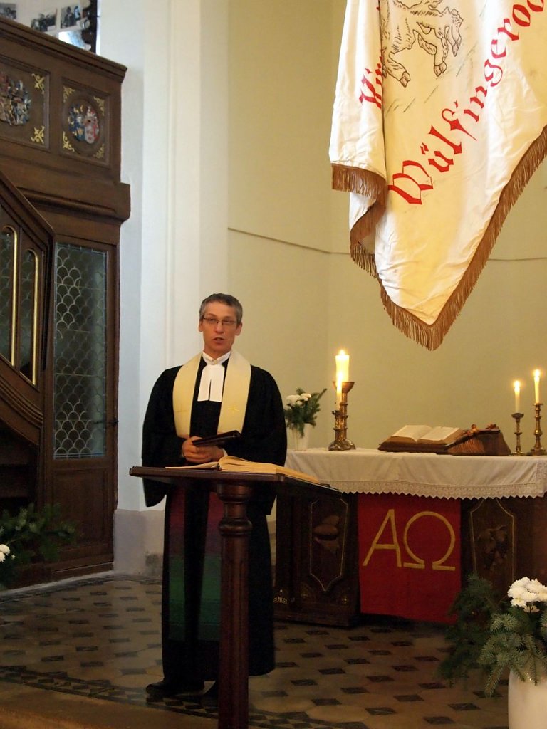 Pfarrer Michael Blaszcyk aus Bleicherode predigt ganz anschaulich von Möhren- und Spargelmenschen, die, so unterschiedlich sie sein mögen, doch vor Gott alle gleich sind. Der örtliche Pfarrer Werner Heizmann sitzt derweil an der Orgel und unterstützt die Gemeinde beim Gesang. Während der Vorsitzende des Kirchbauvereins, Stephan Domann, ganz in seinem Element ist. Traditionen zu bewahren, das liegt ihm am Herzen und so bedankt er sich auch bei dem neuen und dem ehemaligen Kirmesschulzen für ihren Dienst.