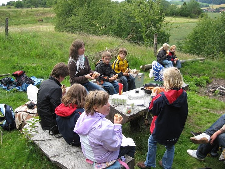 Bei einer wunderbaren Aussicht über die Felder und Wiesen von Harzungen war der Imbiss nicht nur für den Gaumen ein Genuss.