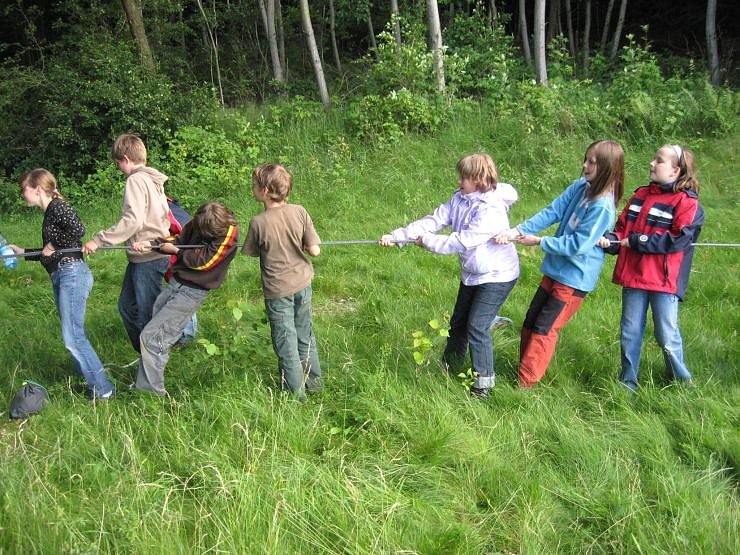 Angeleitet vom Erlebnispädagogen Alexander Ibe wurde geklettert, über einen 'Salzsee' gehangelt, zusammen gerückt und durch ein giftiges Spinnennetz geklettert. Dass zwischendurch der kleine Hunger Einzug hielt war klar und die Versorgung mit Würstchen und Süßem gesichert.