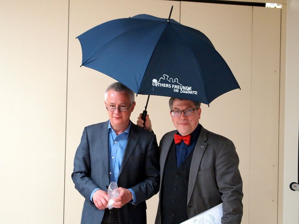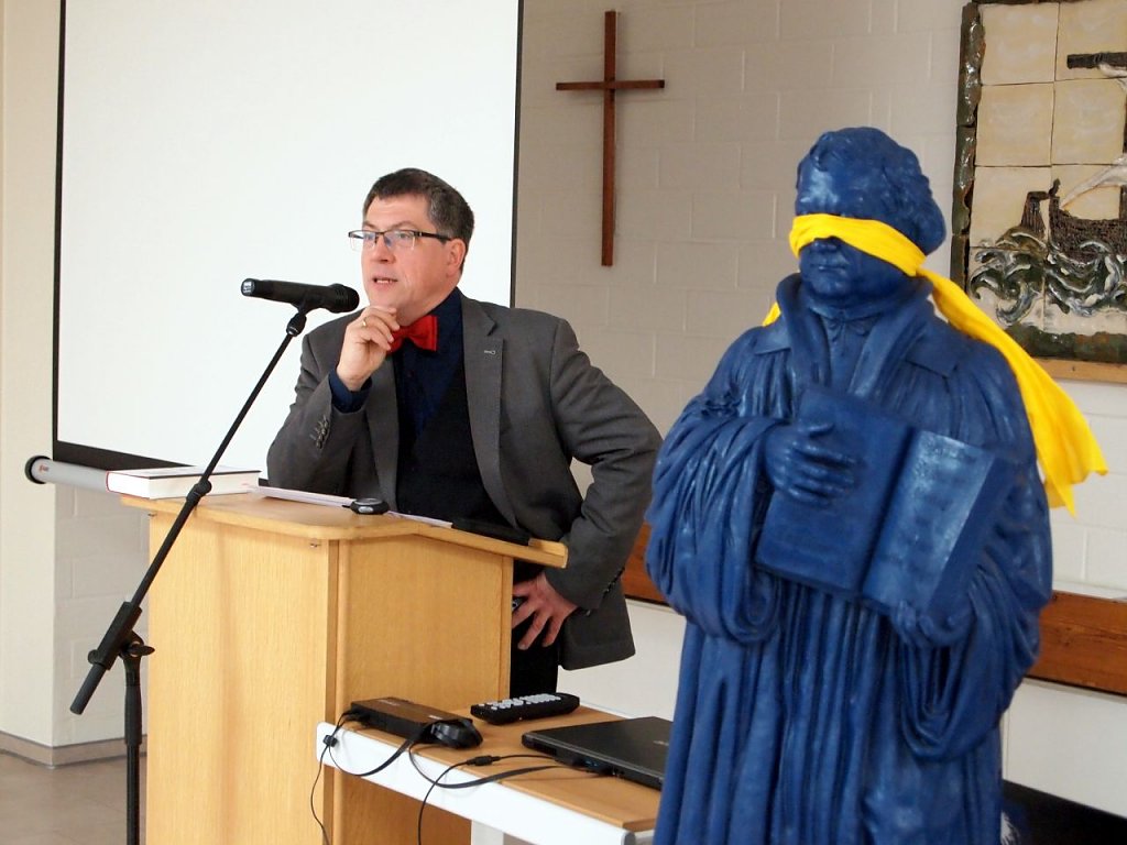 Der anschließende Vortrag Friedrich Kramers, Akademiedirektor der Ev. Akademie Sachsen-Anhalt in Wittenberg, zum Thema: Luther-Erinnerung zwischen glühender Verehrung und harscher Kritik war sehr informativ und lebendig. Kramer berichtete eingangs vom Wandel des Lutherbildes im Laufe der Jahrhunderte, das die Reformationsjubiläen jeweils prägte. Das aktuelle Jubiläum 2017 zeige einiges Neue. So sei es keine reine Luther-Verehrung, in Nordhausen beispielsweise laute das Motto Luthers Freunde. Die Zeit der Reformation wird hier mit ihren vielen Beteiligten und ihrem Wirken in die Gegenwart hinein in den Blick genommen. Es sei auch keine rein kirchliche Feier mehr. Im Kirchenkreis Südharz zeigt dies das breite Spektrum an Veranstaltungen und Mitgestaltern. Das Jubiläum habe sich zudem über Deutschland hinaus zu einer europäischen Bewegung entwickelt, betonte Kramer. Und auch die Idee, sich mit der ökumenischen Feier des Christusfestes gemeinsam auf die Wurzeln zu beziehen, sei neu. Gleichzeitig sei die kritische Betrachtung des Menschen Luther in Gang gekommen. Vom Antisemitismus des späten Luthers hat sich die evangelische Kirche in einem Beschluss der Landessynode im November 2016 klar distanziert.