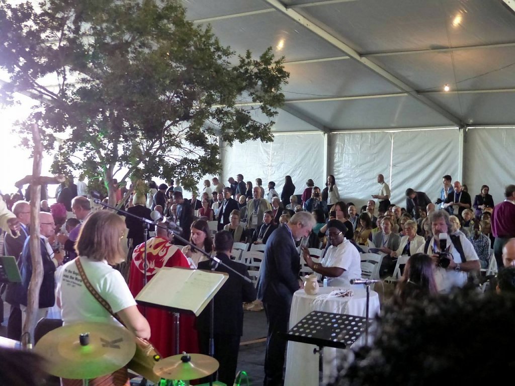 Die Vollversammlung des LWF tagt! Die Internetpräsenz ist enorm! Man kann vieles life verfolgen. Nun bin ich im Chor angekommen. Schon gestern wurde für den heutigen Eröffnungsgottesdienst geprobt. Es macht sehr viel Spaß. Der Gottesdienst war ein großes Erlebnis, wunderbare Texte, Musik und geistliche Gemeinscchaft. Das Vater Unser in allen Sprachen hat mich sehr angerührt. Die Themen Frieden und Vergebung stehen im Mittelpunkt und sind in Namibia überall präsent. Die Reden des Präsidenten des LWF Dr. Munib A. Youan ist sehr interessant, schlägt einen Bogen von der Befreiung durch Gottes Gnade zur Versöhnung der Völker und Nationen unserer Welt.