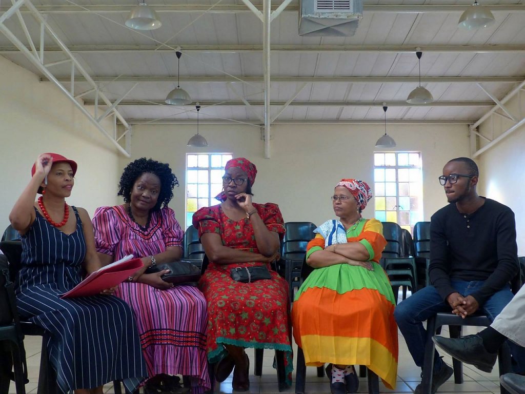 Zwischendurch hatten wir aber auch noch sehr interessante Begegnungen: am Donnerstag trafen wir uns in einem Kaffee der Stadt mit Deo, Nick und Andreas, die als kleine Kinder von der SWAPO in die DDR geschickt wurden, um "zu sozialistische Persönlichkeiten" erzogen zu werden.1990 mussten sie zurückkehren nach Namibia, ohne Wurzeln (Kultur, Sprache, Religion und familiäre Bindungen, sie konnten nicht einmal Englisch sprechen. Hier braucht sie niemand, es wurden verachtet und gehören zu den "DDR- Kindern", die es nicht geschafft haben,... Davon ist wohl noch zu erzählen! Und gestern besuchten wir eine Frauengruppe in einer evangelisch lutherischen Gemeinde der Townshhip Katutura. Sie bilden ein Netzwerk und helfen einander. Auch die Frauen stellten uns Fragen zu Kirche und Gemeindeleben, es war für sie unglaublich, dass es in Deutschland Städte gibt, in denen nur 10% Christen leben.. "Und was glauben die anderen?"