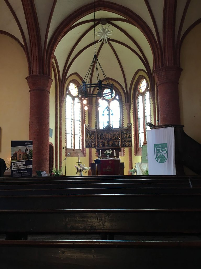 Und wieder sind wir in unserem Kirchenkreis einen unserer 12 Schritte zum Reformationsjubiläum gegangen. Dieses Mal war die Görsbacher Gemeinde der Gastgeber. Der Vorsitzende des Gemeindekirchenrates Dirk Schröter blickt freudig zurück: Es war ein schöner Nachmittag. Den Beginn machte ein Gottesdienst mit allen 12 Lutherzitaten, die später als Scherenschnitt zu sehen sein sollten. In der Predigt wurden sie mit verteilten Rollen gelesen! Ehrengast Erika Schirmer selbst eröffnete die Scherenschnittausstellung in der eben diese 12 Lutherzitate in ihrer bekannt filigranen Kunst zu sehen sind. Zur gemütlichen Kaffeetafel mit 20 Sorten schönstem Blechkuchen leitete anschließend die Reformationsbeauftragte Petra Gunst mit einem Grußwort über. Im ebenfalls gut besuchten Vortrag zu C.Taubenthal konnten die Zuhörer viel Wissenswertes aus der Region in Bezug auf die Reformation erfahren. Der musikalische Höhepunkt der Festveranstaltung war das Abendkonzert von Posaunen und Kirchenchor. Die Kirchengemeinde Görsbach dankt allen Helfern, als auch dem Kirchenkreis recht herzlich für die Unterstützung.