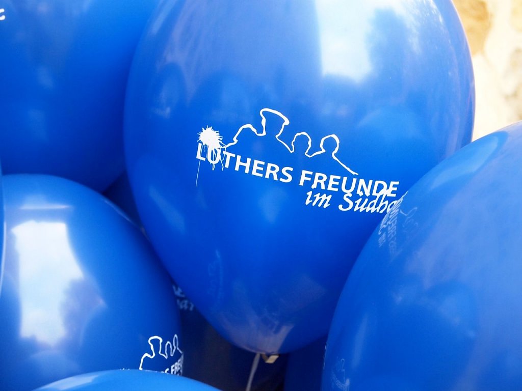 Doch das Wichtigste an all den Tagen werden die Gespräche sein. Und damit man uns auch im Bugenhagenhaus findet, werden wir regelmäßig in der Stadt Werbung machen. Wir verteilen unsere schönen "Luthers Freunde"-Ballons und kleine Flyer, die auf uns und unsere Schätze aufmerksam machen.