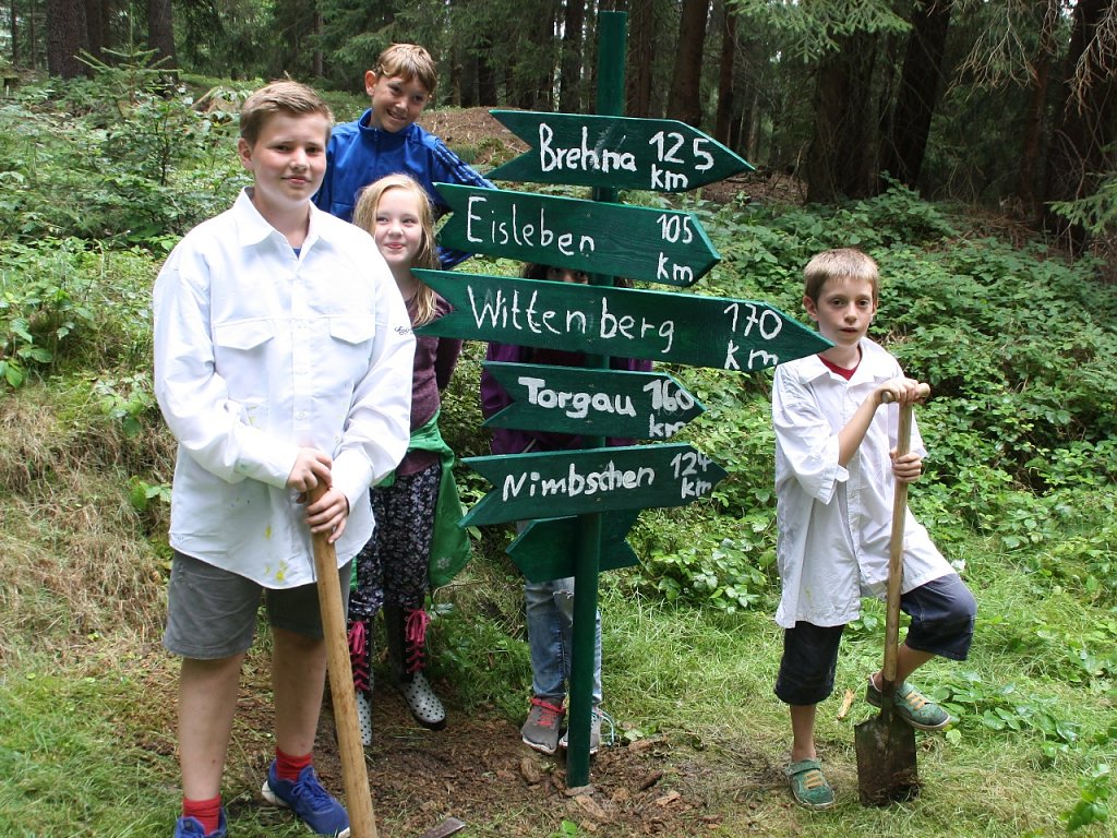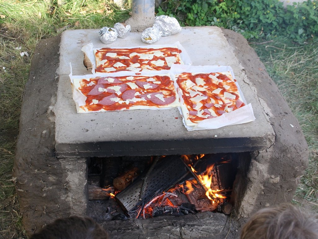 82. Beim nachmittäglichen Handwerk wurden der Wegweiser, die Kräuterschnecke und der Lehmoffen fertig gestellt.