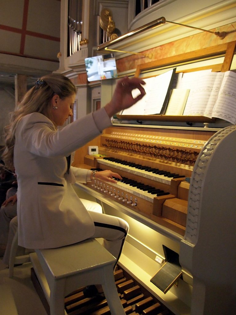 Wie zu erwarten, war der Einführungsgottesdienst für die neue Kreiskantorin ein Fest-Gottesdienst mit viel Musik. Yeromina leitete den Chor, spielte die Orgel und dirigierte mit der anderen Hand noch die Flöten, sang Soli und während des anschließenden Kaffeetrinkens auch noch ein paar russische Weisen gemeinsam mit ihrem Mann Slava Yeromin.