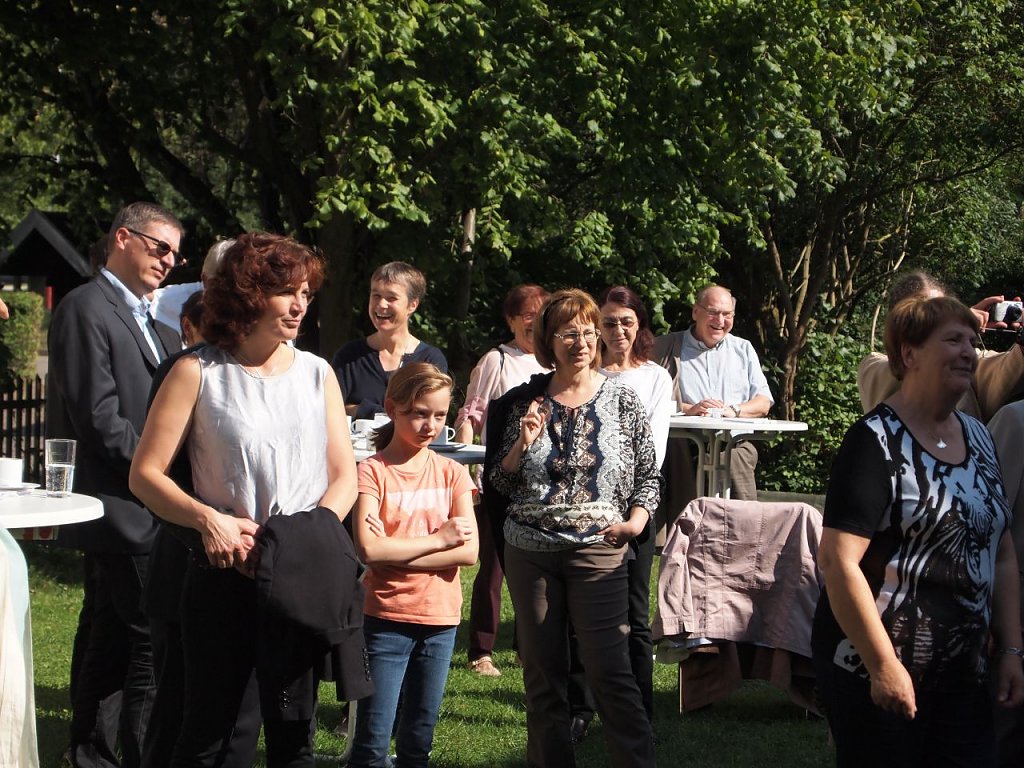 Anschließend wurden noch ein paar Grußworte verlesen und dann ging es rüber in den Pfarrgarten zu Kaffee und Kuchen....und einem Teller Borschtsch, den die Eheleute Yeromin für diesen Tag in großen Mengen zurbereitet hatten. Ihre zweite Überraschung war dann der Vortrag zweier russischer Weisen.