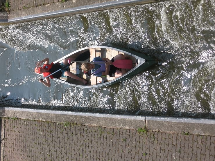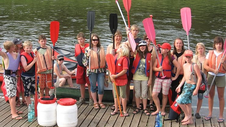 Erschöpft aber glücklich sind die Ilfelder Konfirmanden von ihrer Kanu-Tour zurückgekehrt. 13 Konfirmanden der Pfarrbereiche Ilfeld und Neustadt waren 8 Tage in den Sommerferien auf Flüssen unterwegs. Nach dem Start in Hörschel ging es über Creuzburg (Foto anuf der Brücke), Mihla , Altenburschla, Eschwege auf der Werra bis nach Witzenhausen. Im Grenzmuseum Schifflersgrund (Foto) bei Bad Sooden-Allendorf wurde die schreckliche Trennnung Deutschlands mit einer Führung und der Schilderung des tödlich endenden Fluchtversuches von Hans-Josef Große anschaulich. Nach einem Umsetzen der Boote ging es für einen Tag die Fulda hinab bis nach Hann.Münden, von dort an weiter auf der Weser bis nach Bad Karlshafen. Die Jugendlichen absolvierten auf dem Wasser eine Strecke von 173 Bootsklilometern und erreichten am Wochenende erschöpft und glücklich mit dem Zug Niedersachswerfen. In schöner Erinnerung blieb dabei das Witzenhausener Freibad mit 10-Meter-Turm sowie das Kirchenpflücken, die Lese-Wanderung mit Herrn Kube, der Aufenthalt im Kloster Bursfelde und die allabendlichen Koch-Abenteuer. Begleitet wurde die von den Ilfelder Pastoren Elke und Claus Conrad organisierte Kanu-Tour vom Pfarrer Peter Kube sowie - ab Witzenhausen- von der Neustädter Gemeindepädagogin Tina Bäske.