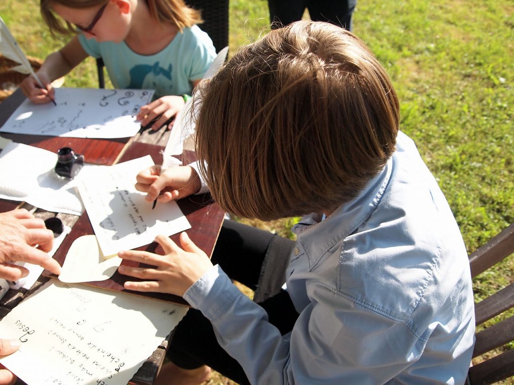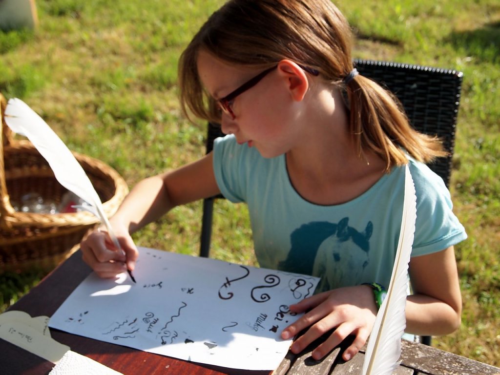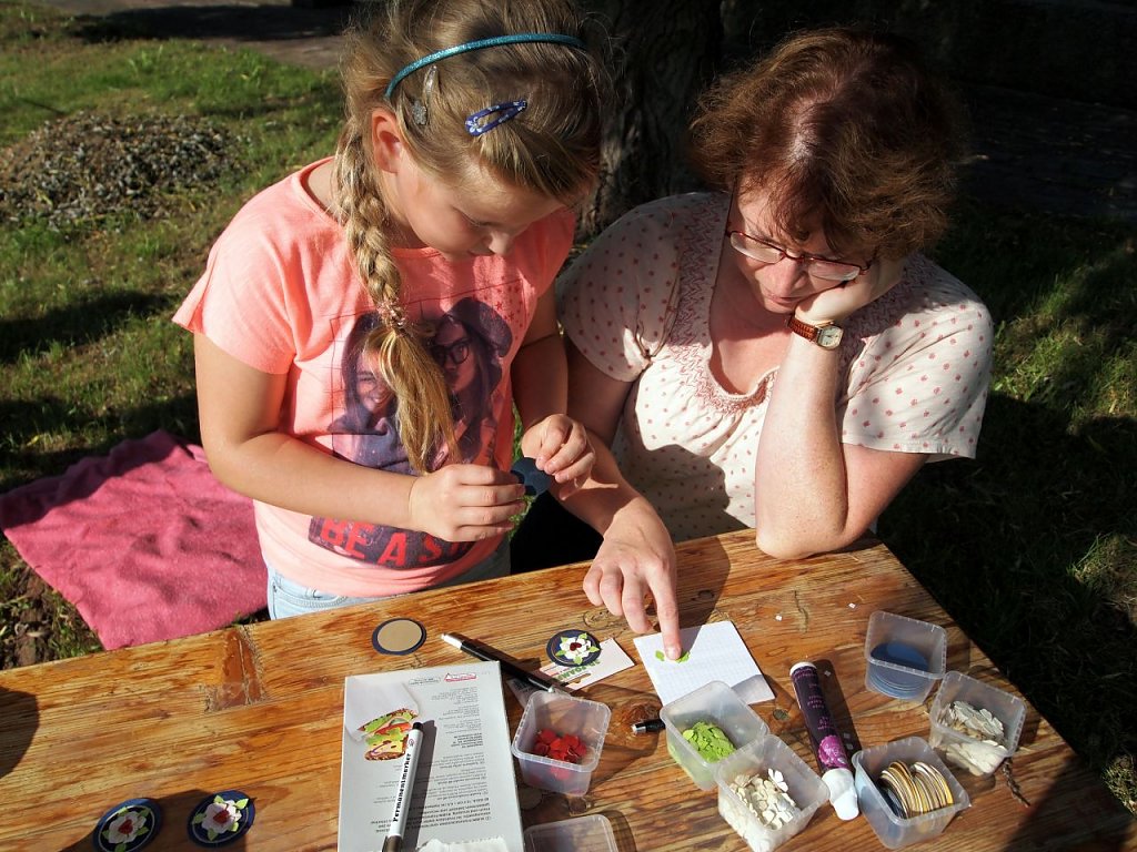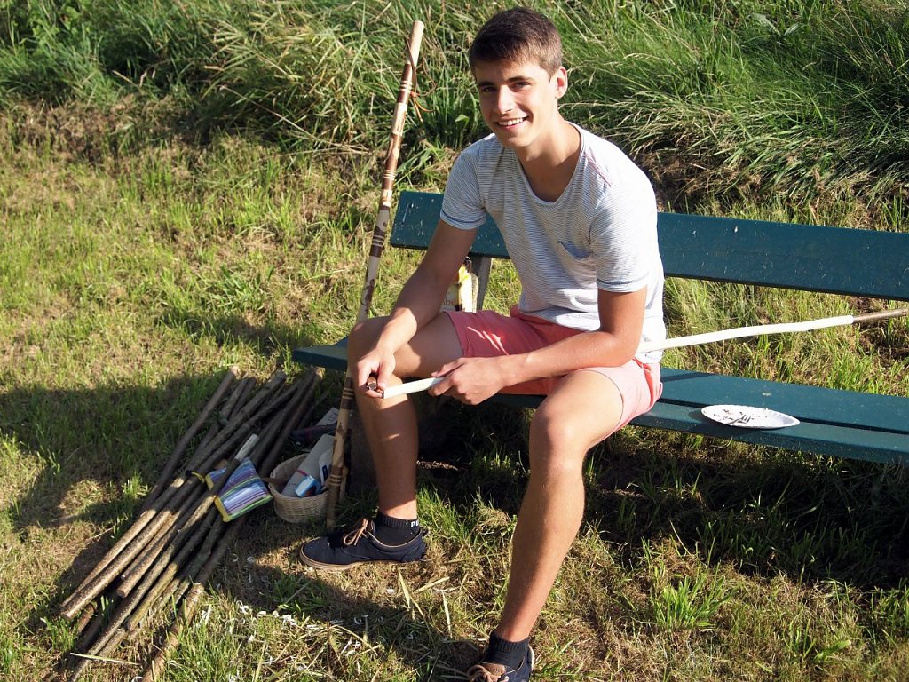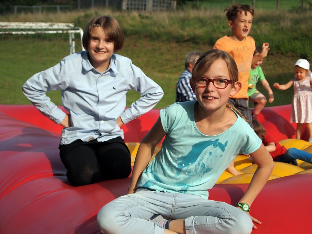 Im Teich, dem Elender Spielplatz wurde derweil gebastelt und gehüpft, was die kindliche Energie hergab. Kerstin Müller, Lars Englert und Erika Herzel begleiteten die Kinder dabei – Pilgerstöcke zu schnitzen, Lutherrosen zu basteln, mit dem Federkiel zu schreiben oder sich auf der Hüpfburg auszutoben. Und wer sich mit Blasen am Zeh auf den Heimweg machte, konnte sich gleich noch einen Pilgerstab schnitzen, kommentierte Kathrin Schwarze mit Weitblick.