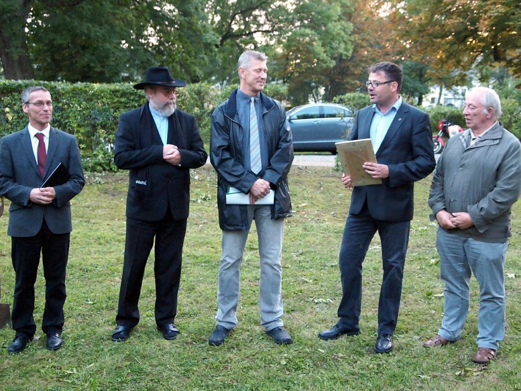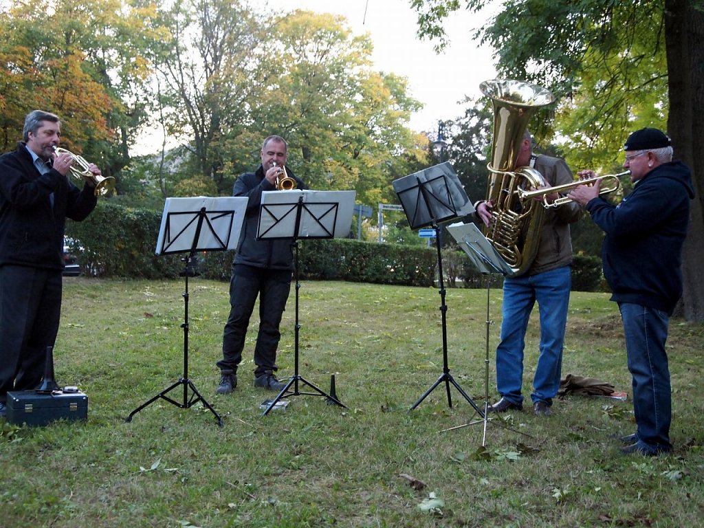 Den Festakt selbst gestalteten an diesem lauen Herbstabend dann: der Bleicheröder Pfarrer Michael Blaszcyk, der katholische Pfarrer Hans-Josef Seideneck, der Vorsitzende des Gemeindekirchenrates Bleicherode Dr. Chr. Maletz und der Kirchortratsprecher Günter Rümmler - musikalisch begleitete sie das Bleicheröder Bläsersextett.
