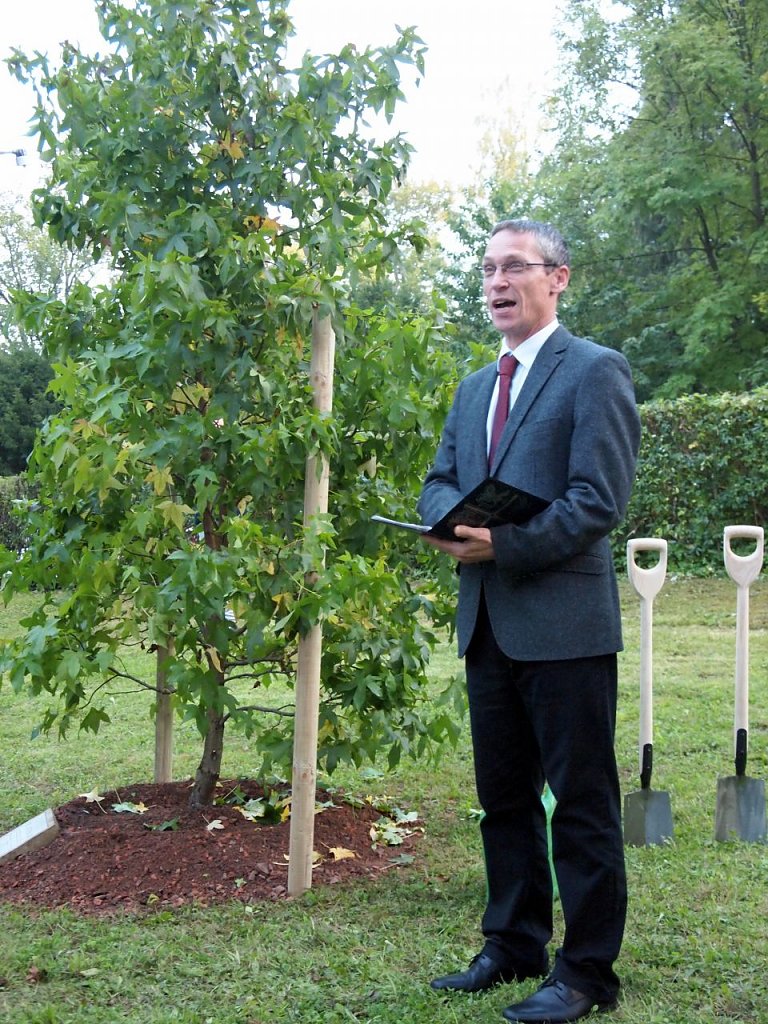 Dr. Christoph Maletz, Vorsitzender des Gemeindekirchenrates, begründet die Pflanzung: Vielerorts wurde dazu aufgerufen in diesem traditionsträchtigen Jahr 2017 Luther-Bäume zu pflanzen. Aber irgendwie hatte ich das Gefühl, dass wir sozusagen schon ein Stück weiter sind.