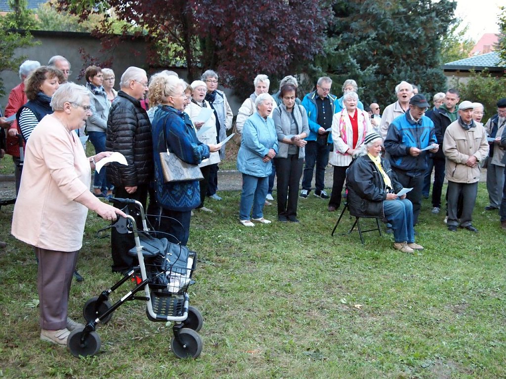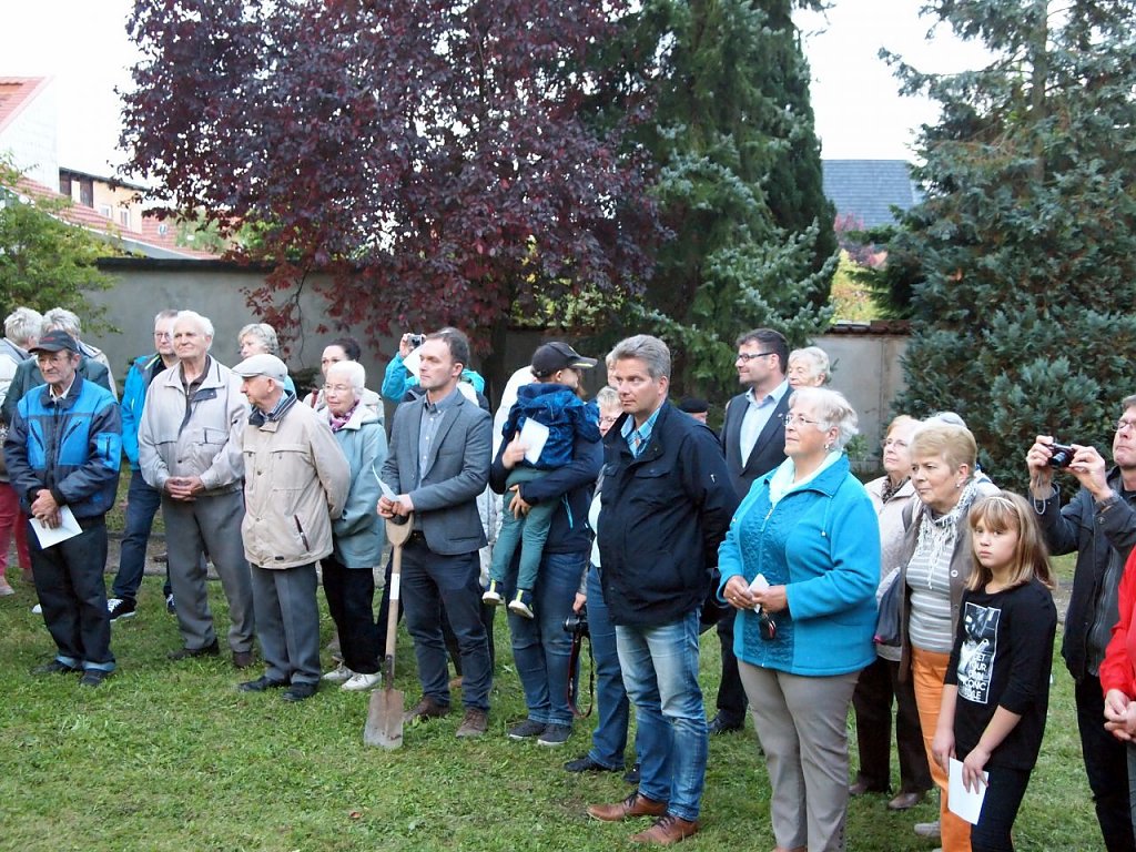 Viele Gäste waren gekommen: Mtiglieder des Bleicheröder Stadtrates, der Bleicheröder Bürgermeister Frank Rostek, der seinerseits ein Geschenk überreicht, die Vizepräses der Kreissynode Regina Englert und zahlreiche geladene Gäste beider Gemeinden. Entsprechend kraftvoll erklang "Großer Gott, wir loben dich" durch den Park.