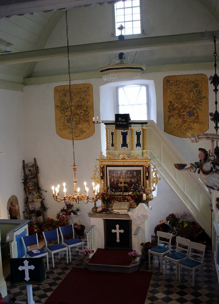 Die größte Sensation ist aber wohl das Altarbild. Es galt als wertvoll, da es – datiert auf 1698 - die Abendmahlsszene mit lebhaften, sehr individuellen Figuren zeigte. Bei den restauratorischen Freilegungen trat zutage, dass das Gemälde 50 Jahre nach dem Dreißigjährigen Krieg offenbar nicht gemalt, sondern nur über-malt wurde., da die ursprüngliche Fassung durch Schüsse und Alter beschädigt war. Nun tritt ein Bild im Stil der italienischen Frührenaissance zutage, wie es im weiten Umkreis einmalig sein dürfte: fein gezeichnete Gesichter und Frisuren, die Gloriole und der Kelch in echtem Gold, der reiche Faltenwurf der Gewänder und eines Vorhangs, Säulen, Türen und Fenster mit Aussichten in eine ferne Landschaft und den Himmel sind typische Stilelemente der vorreformatorischen Jahrhunderte. Zum Glück half hier die Deutsche Stiftung Denkmalschutz, denn eine solche Renovierung wäre selbst für die großzügig spendenden Epschenröder zu teuer gewesen.