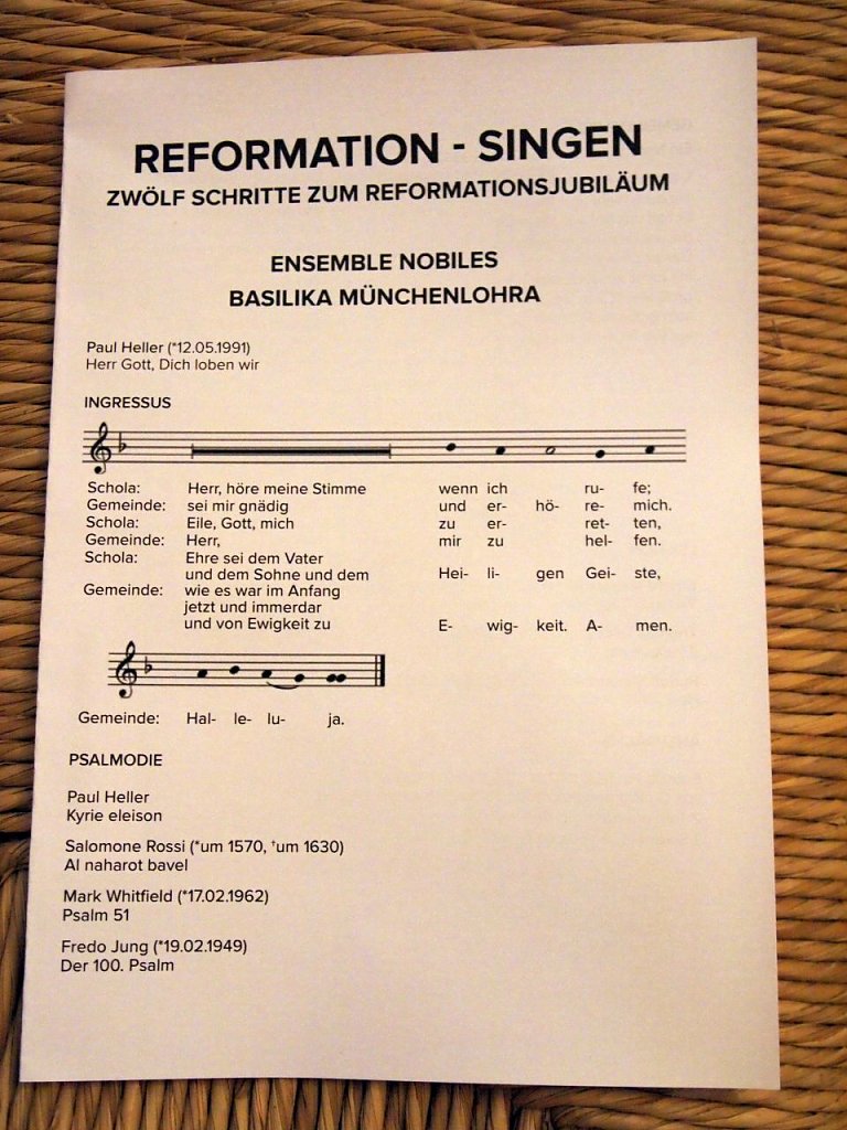Was dann in der Basilika erklang waren gregorianische Gesänge, Lutherchoräle und ein wenig anderes. Und das mit Stimmen, bei denen man einfach nur die Augen schloss. Eine ungeahnte Ruhe breitete sich aus. Und in der Tat war kein Rascheln im Publikum zu hören. Welch´ ein Genuss - schade um jeden, der nicht dabei sein konnte.