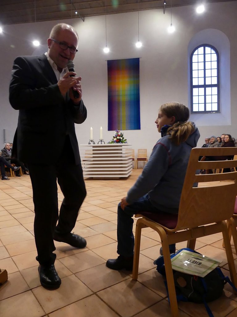 Nach ihnen bat Pfarrer Halver alle Helfer der letzten beiden Jahre auf die Bühne, um ihnen einen Schoko-Nikolaus, passend zu St. Nicolai zu überreichen. Was vorn erschien, war jedoch nur die Spitze des Eisbergs. Die meisten taten es St. Nikolaus gleich und blieben mit ihren guten Taten im Verborgenen.