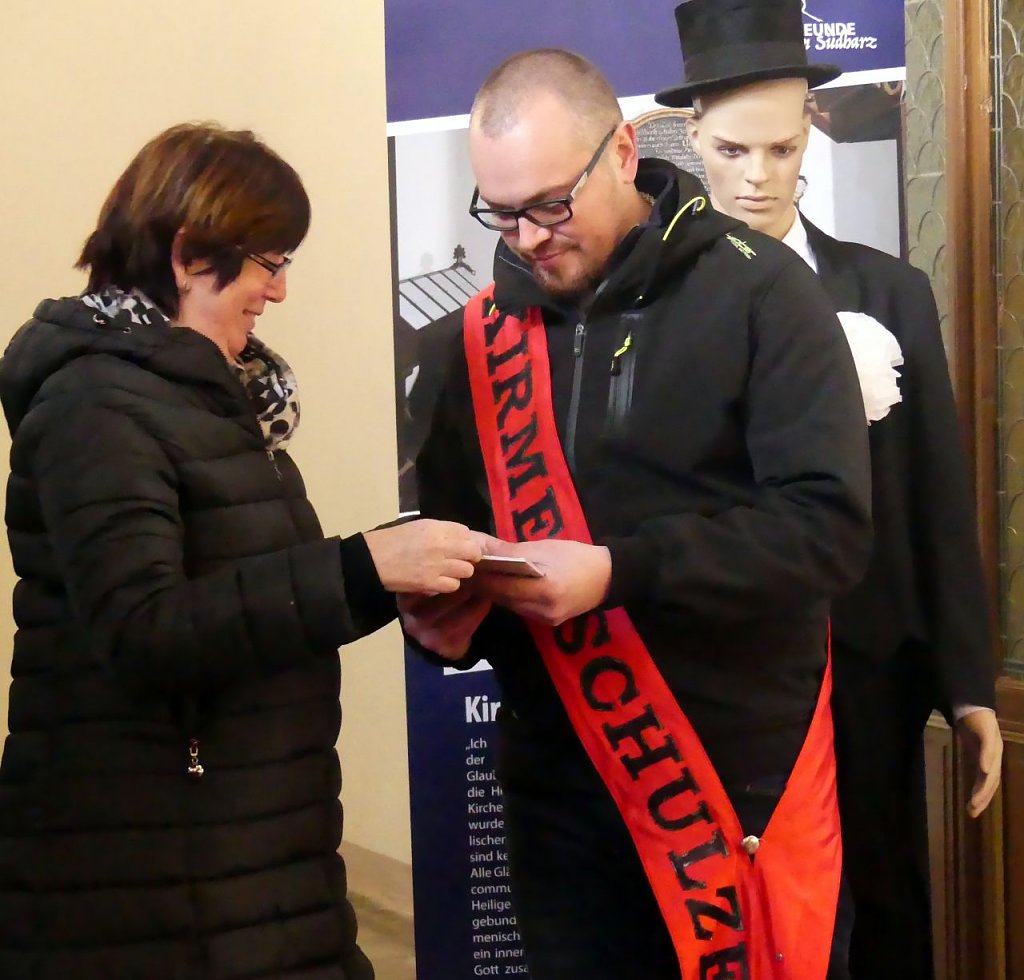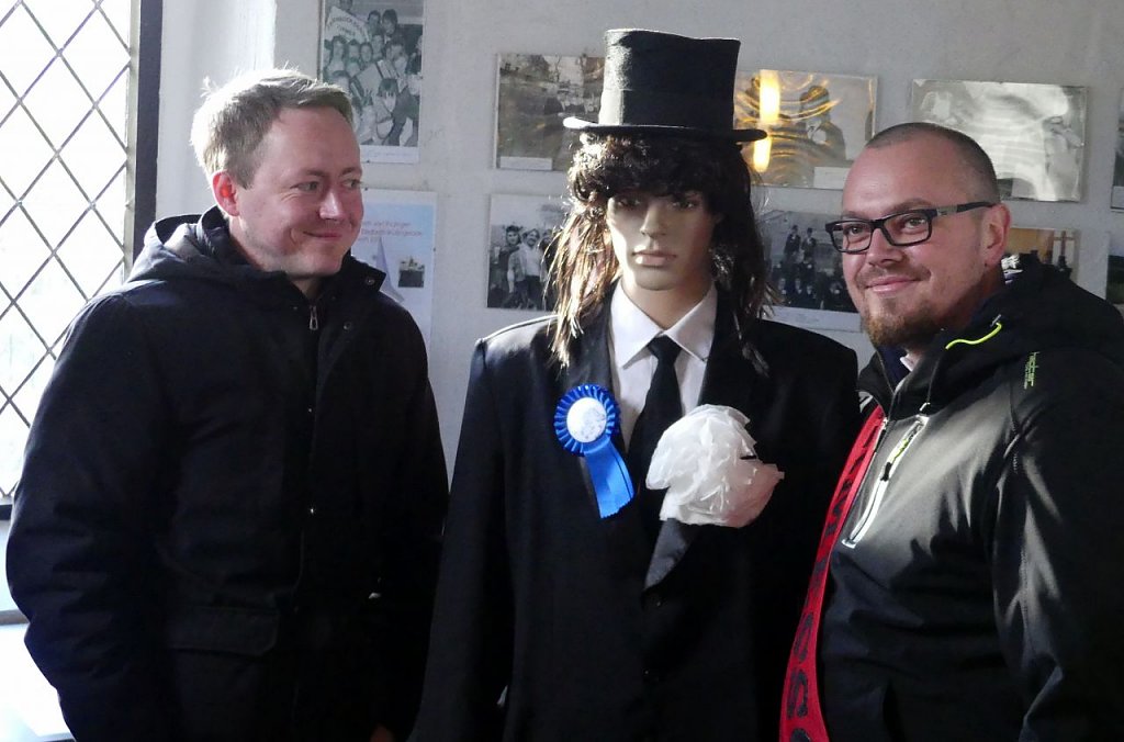 Becker und Domann "enthüllten" zudem gemeinsam den lebensgroßen Kirmesburschen im Festornat, mit Frack und Zylinder, der nun das Kirmesburschenzimmer in der Kirche ziert. Er soll künftigen Generationen die Tradition anschaulich näher bringen. Viele der Schulzen blicken in ihren Familien auf einige Generationen zurück, die dieses Amt ebenfalls einmal inne hatten. So gleicht die Namensliste im Kirmesburschenzimmer schon fast der Ahnengalerie manch eines Wülfingeröders.