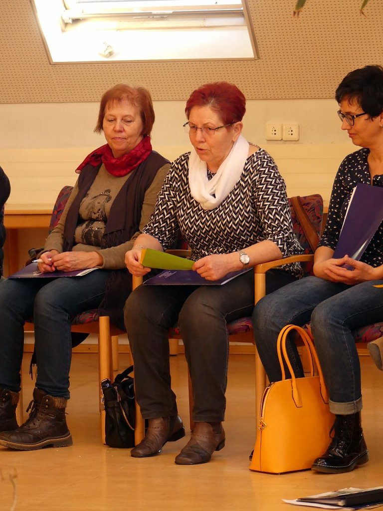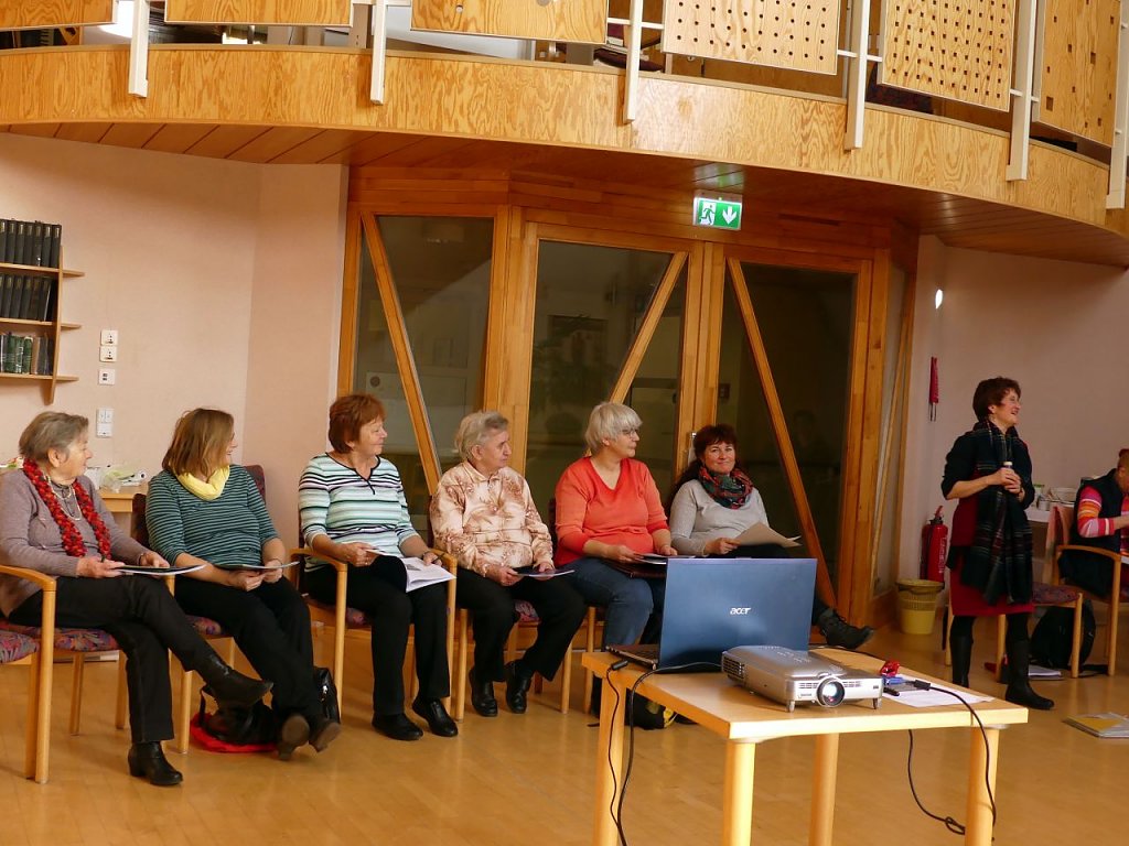 Und herein kamen 32 Frauen aus unserem Kirchenkreis, die sich haben rufen lassen. Selbst die Verantwortlichen waren wohl von der großen Zahl überrascht, denn es mussten noch flugs Stühle hinzu gestellt werden.