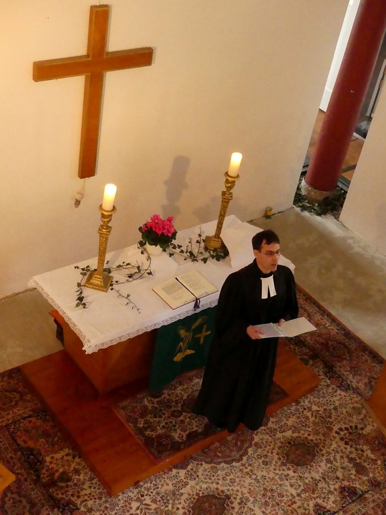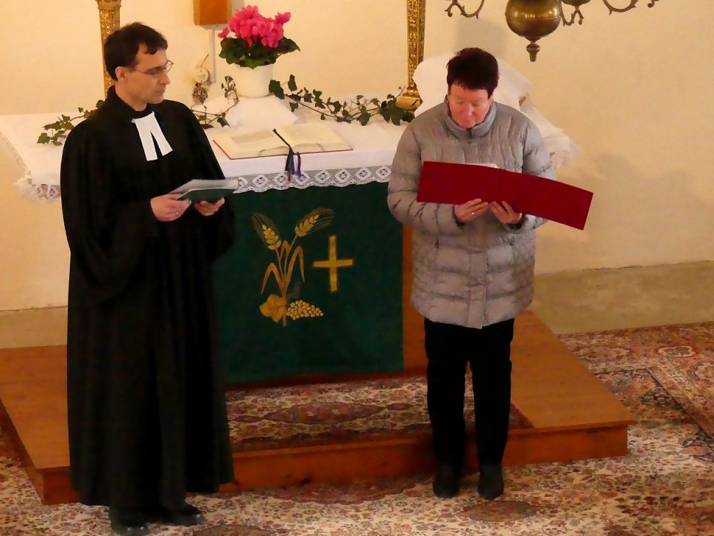 Pfarrer Gregor Heimrich aus Ilfeld vertrat als stellvertretender Superintendent den momentan leider stimmlosen Superintendenten Andreas Schwarze bei diesem Gottesdienst. Und auch Pfarrerin Ulrike Kosmalla, die die Vakanzvertretung bislang zusätzlich zu ihrem Dienst übernommen hatte, musste sich aus gesundheitlichen Gründen entschuldigen lassen. Wie leid ihr dies tat und wie dankbar sie der Gemeinde für die ihr in der Vertretungszeit gewährte Unterstützung ist, ließ sie später noch durch Pfarrer Heimrich in einem Grußwort verlesen. Die Grippewelle hat mittlerweile wohl so manchen erwischt.