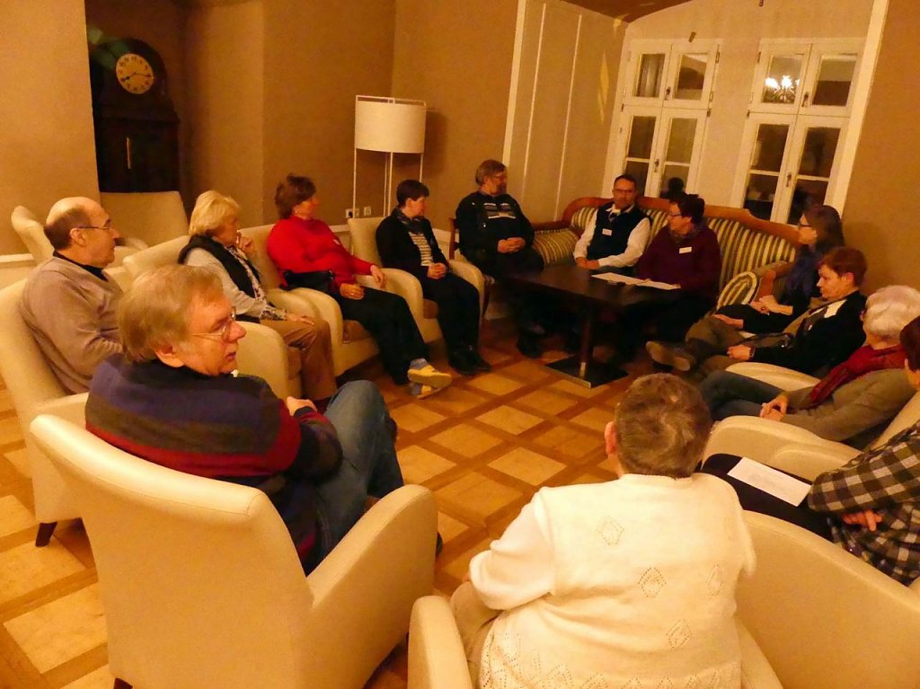 Nun sitze ich hier im Foyer der Burg und tippe den Bericht für Sie - in meinem Zimmer ist der Internetempfang leider etwas grenzwertig. Derweil wird oben im Burgsaal noch intensiv geschwatzt. Vieles wurde angestoßen und bedarf nun gleich eines Austausches. Na, das kann ja morgen noch spannend werden, wenn wir richtig ins Thema eintauchen.