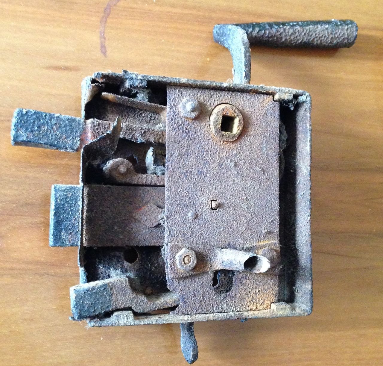 Das war mal das Schloss zur Glockenstube unserer Basilika. Nachdem es viele Jahrzehnte unter harten Bedingungen seinen Dienst versah, ist es jetzt nur noch als Kunstobjekt geeignet, nicht zum Verschließen eines "elektrischen Betriebsraumes". Hat jemand von euch vielleicht noch ein nicht mehr benötigtes Schloß der selben Größe, dass er uns zur Verfügung stellen könnte? Der Schlosskasten ist 128 mm hoch und 125 mm breit, es handelt sich um eine links angeschlagene Tür. Herzlichen Dank fürs Nachschauen ;-) Bernhard Halver