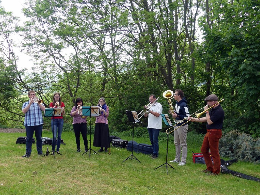 Nach dem Abendmahl zog die Gemeinschaft dann raus ins Grüne, genoss die Leckereien und lauschte den Bläsern noch eine Weile. Christi Himmelfahrt an der Basilika Münchenlohra ist für die Gemeinden schon zur schönen regionalen Tradition geworden.