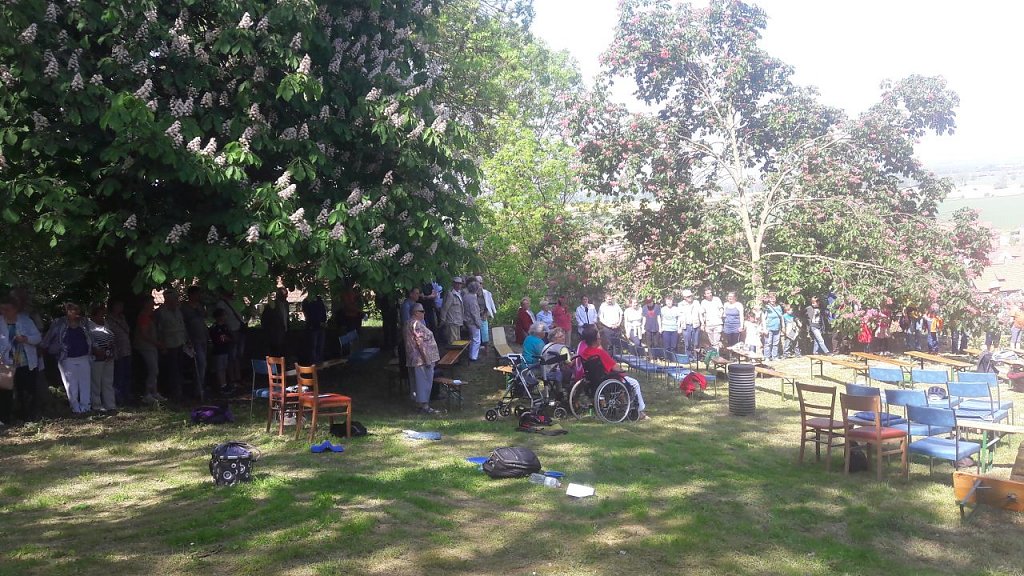 "Und Jesus stieg mit seinen Jüngern auf den Berg..." so heißt es in der Bibel. Am Himmelfahrtstag 2018 taten es ihnen viele nach! Kleine und Große , Junge und Alte, Kranke und Gesunde, Radfahrer und Fußgänger nahmen den beschwerlichen Weg zur Petri.-und Paulskirche über Auleben in Kauf. Und alle wurden reichlich belohnt ... mit einem wunderbaren Gottesdienst, einer atemberaubenden Aussicht über die Goldene Aue und mit stärkender Gemeinschaftserfahrung! Wir Christen sind dem Himmel ein Stück näher , wenn wir Jesus - Christus in unserer Mitte spüren!