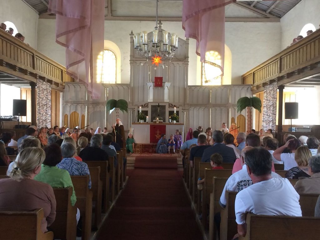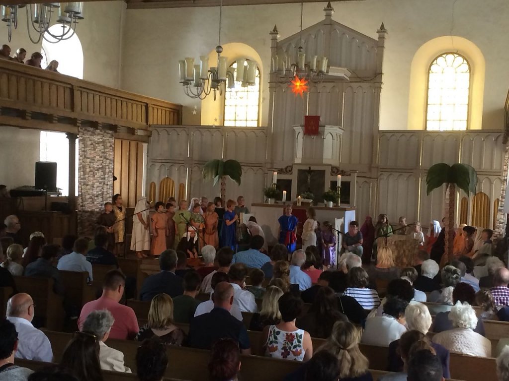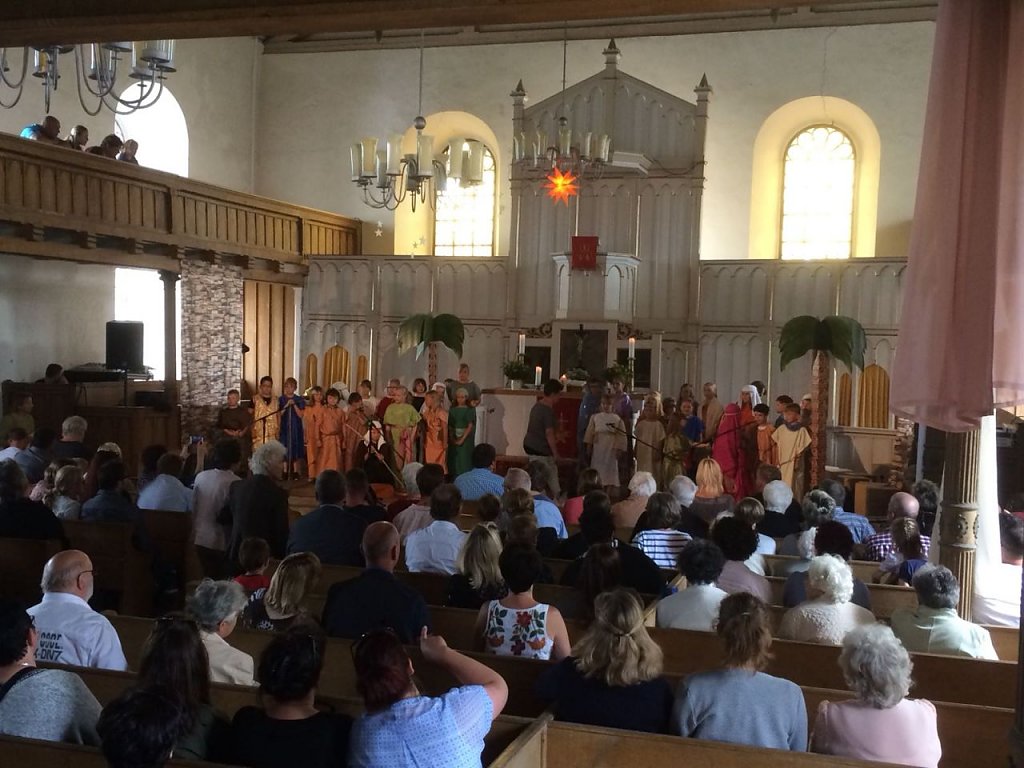 Montagfrüh kam die frische Meldung von Pfarrerin Sabine Wegner herein, dass sich am Sonntag nach dem Tauffest noch einmal gut 200 Erwachsene und 100 Kinder in der Kirche versammelten, um dem Musical Bartimäus zu lauschen.