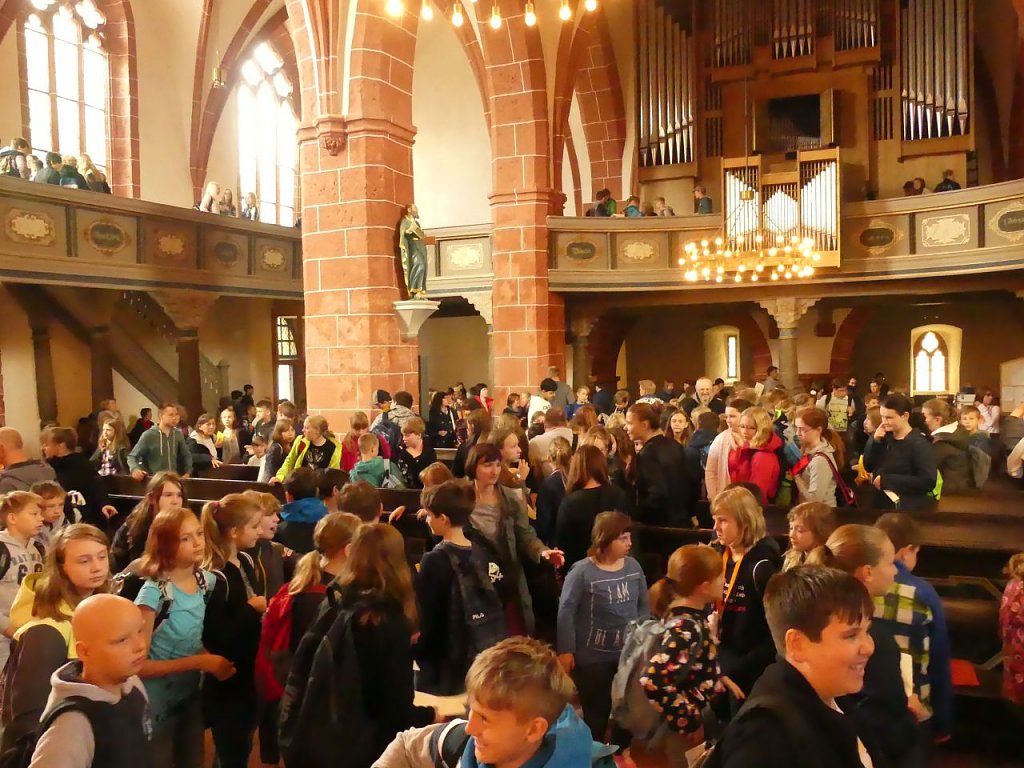 Alles easy, alles gut – das war die knappe Zusammenfassung eines Schülers, auf die Frage, was ihm vom Kirchenentdeckertag des Kirchenkreises Südharz in der Blasiikirche in Erinnerung bleiben würde. Veit Kuhr, der diesjährige Organisator des Tages hatte ihn gefragt und schien auch sehr zufrieden mit dieser spontanen, coolen und positiven Antwort. Über 330 Schülerinnen und Schüler aus neun Schulen hatten sich zur Kirche aufgemacht. Zu Fuß und mit Bussen kamen sie aus Nordhausen ebenso wie aus Niedersachswerfen, Bleicherode und Breitenworbis. Allesamt aus den 5. und 6. Klassenstufen ihrer Regelschulen oder Förderzentren. Ein munteres Trüppchen zog da mit lautem Getöse in die altehrwürdige St. Blasii-Kirche. Und das bereits zum zehnten Mal. Das Gemäuer ist also schon schmunzelnder Profi im Umgang mit fröhlichem Kinderlärm.