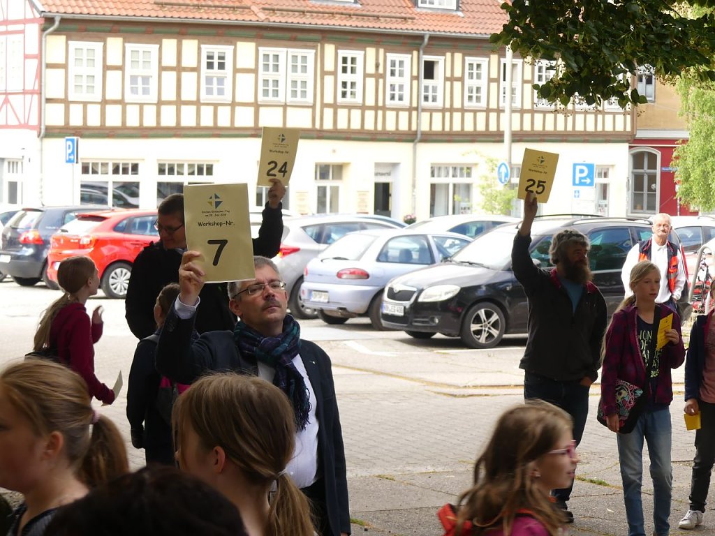 Die Allianz beispielsweise stellte einen Büroraum in ihrem Haus gegenüber der Blasii-Kirche zur Verfügung, während gleich nebenan der Arbeitsalltag weiterging. Auch der Dom öffnete seine Türen weit für mehrere Gruppen, die Flohburg, das St. Josephshaus, die Stadtinfo, die Stadtbibliothek, der Weltladen mit Schrankenlos e.V., Dr. Marion Méndez vom Museum Synagoge Gröbzig, die Diakonie Suchtberatung, die Johanniter Unfallhilfe und die Jugendkunstschule waren mit im Boot, um nur einige zu nennen. Louiza Radeva vom gleichnamigen Tanzstudio sprang sogar noch schnell ein, als ein anderer Workshop auszufallen drohte und tanzte mit ihrer Gruppe fröhlich vor der Blasiikirche. Der 15-jährige Samuel Rumpold reiste extra aus Halle an, um Schülern den positiven Umgang mit Drohnen zu erklären und vorzuführen.