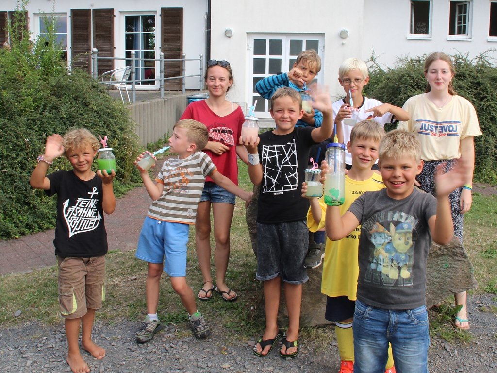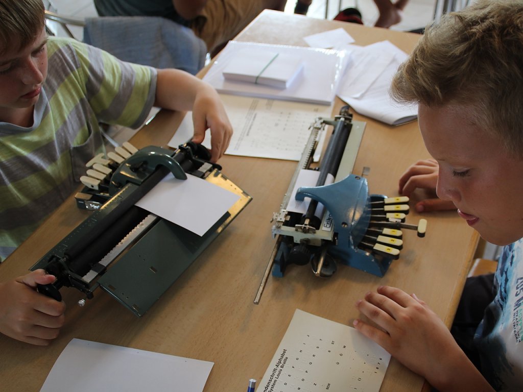 Beim Knacken und Bearbeiten leckerer Kokosnüsse konnten die Beknackten endlich nachvollziehen, wie sie zu ihrem Gruppennamen gekommen sind. Am Ende freuten sie sich über zwei individuelle handliche Schalen. Der Sonne ein Schnippchen schlagen konnten die Strohbasten, sie flochten äußerst kleidsame Strohhüte. Weil bei großer Hitze für ausreichend Trinken gesorgt werden muss, war das Handwerk der Fruchtzw*rg* sehr interessant. Aus gesunden Früchten wurden leckere Cocktails gemixt und in selbst gestalteten Cocktailgläsern gemeinsam on the rocks genossen. Keineswegs aussichtslos waren die Aussichtslosen. Sie richteten ihren Blick auf die Fragen: Wie können Blinde lesen? Wie können sie Briefe schreiben? Und kann ich das auch? Sogar einen eigenen Brief auf einer Braille- Schreibmaschine konnte zu Papier gebracht werden.