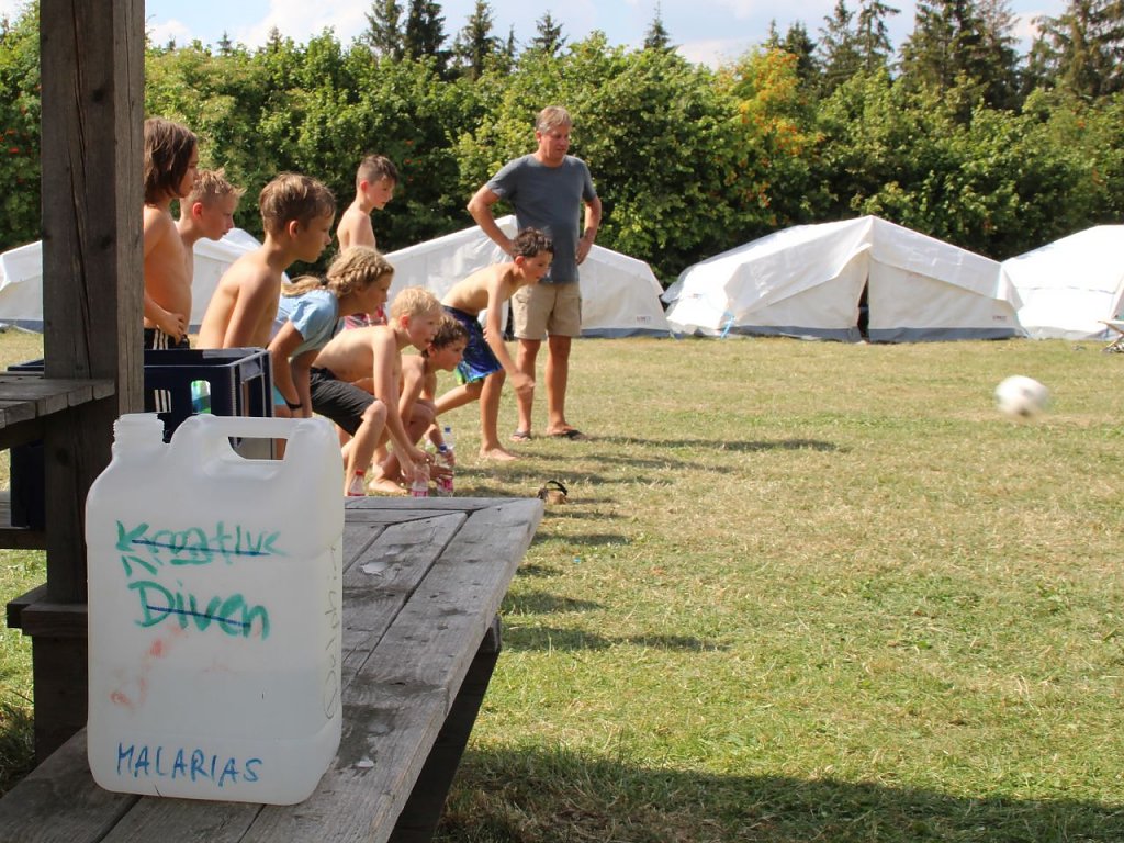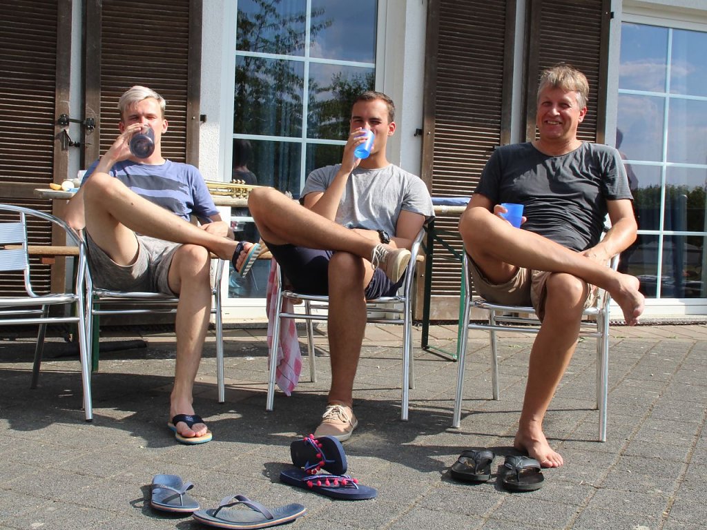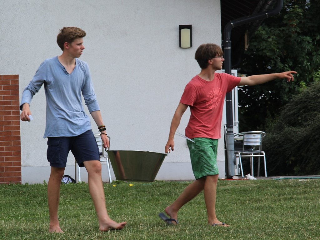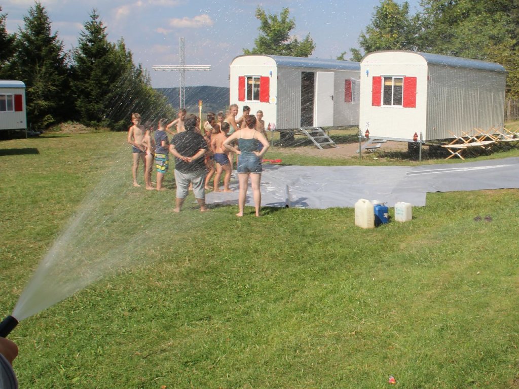 Für die dringend notwendige Erfrischung und Abkühlung sorgten am Nachmittag chaotische Wasserspiele, die natürlich erwartungsgemäß im allgemeinen Durcheinander endeten.