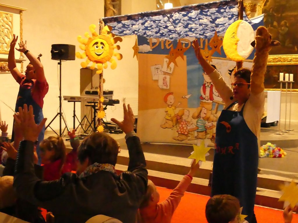 Heiter und kurzweilig mit schwungvollen Liedern zum Mitsingen und Mitmachen wurde Gottes Schöpfungsakt von den beiden Chemnitzern auf die Kirchenbühne gebracht.
