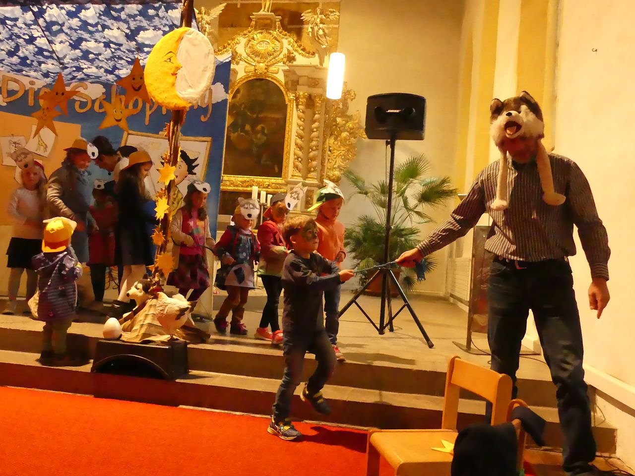 Das brandneue Singspiel Die Schöpfung – ein Wochenrückblick mit Bohra & Bohris hat allen großen Spaß gemacht. Und nicht nur den Kleinen ;-), auch die Großen waren kräftig mit dabei, wenn der Gesang mit allerlei Gestik unterstützt werden sollte. Da schlich so manches fröhliche Lächeln über die Gesichter.