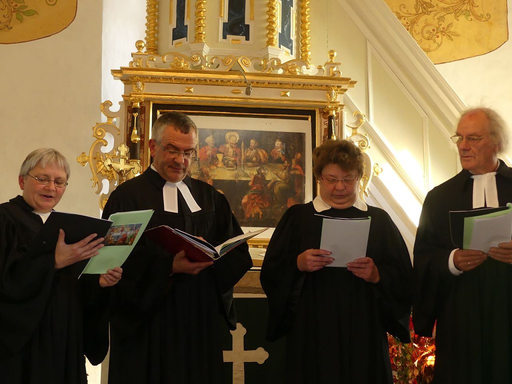 Alle Pfarrer, Lektorin Neubert und im Hintergrund die Bürgermeisterin der Gemeinde Sonnenstein (Foto: R. Englert)