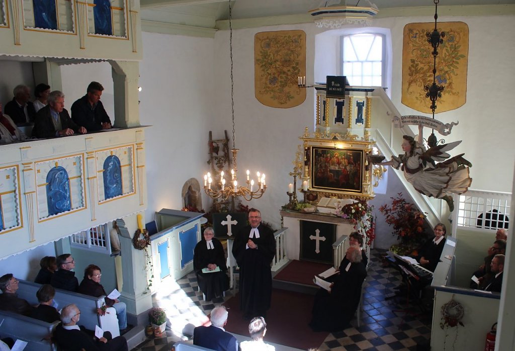 Viele Pfarrerinnen und Pfarrer hatten sich am Sonntag in Epschenrode eingefunden, um gemeinsam Gottesdienst zu feiern. Die ordinierte Gemeindepädagogin Silvia Pavlicek, die für den Pfarrbereich Trebra zuständig ist, Ulrike Kosmalla, Pfarrerin des Pfarrbereichs Großbodungen, Pfarrer Nikolaus Flämig, der heute seinen Dienst in Meiningen tut sowie Pfarrer i.R. Neubert und seine Frau, die Lektorin Hildigund Neubert. Eine große Zusammenkunft für ein großes Ereignis.