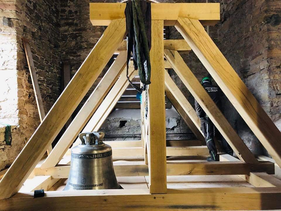 Hier Bilder vom Einsetzen der Glocke in den Kirchturm.