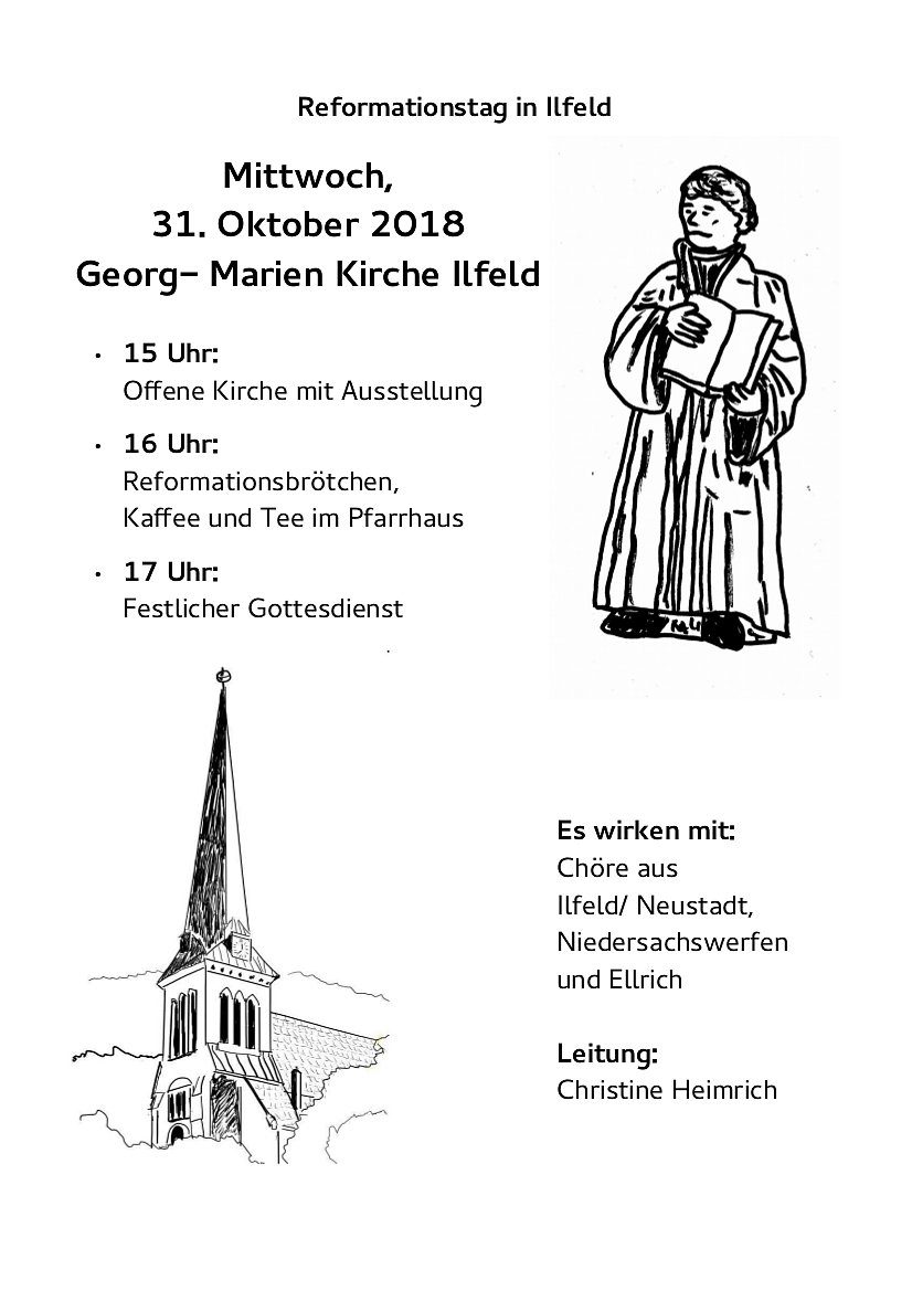 150 Jahre haben wir gerade gefeiert, jetzt feiern die Christen in Harztor in der gerade wieder eröffneten Ilfelder Kirche 501 Jahre Reformation. Diesmal mit einem Chortreffen von Sängerinnen und Sängern aus Ellrich, Niedersachswerfen, Harzungen, Neustadt, Herrmannsacker und natürlich Ilfeld.