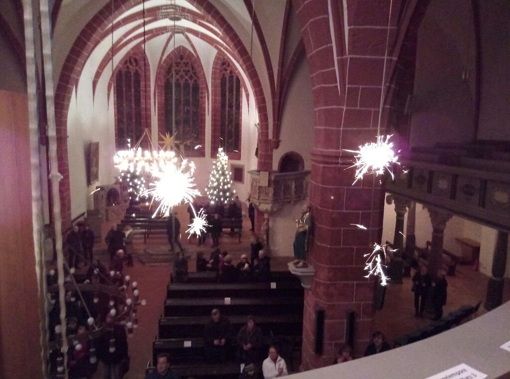 In der Silvesternacht lud er zu einem gut einstündigen Orgelfeuerwerk, inklusive Wunderkerzen-Minifeuerwerk auf der Empore. Um 0.00 Uhr wurde dann noch fröhlich gemeinsam angestoßen.
