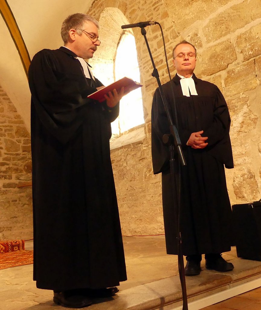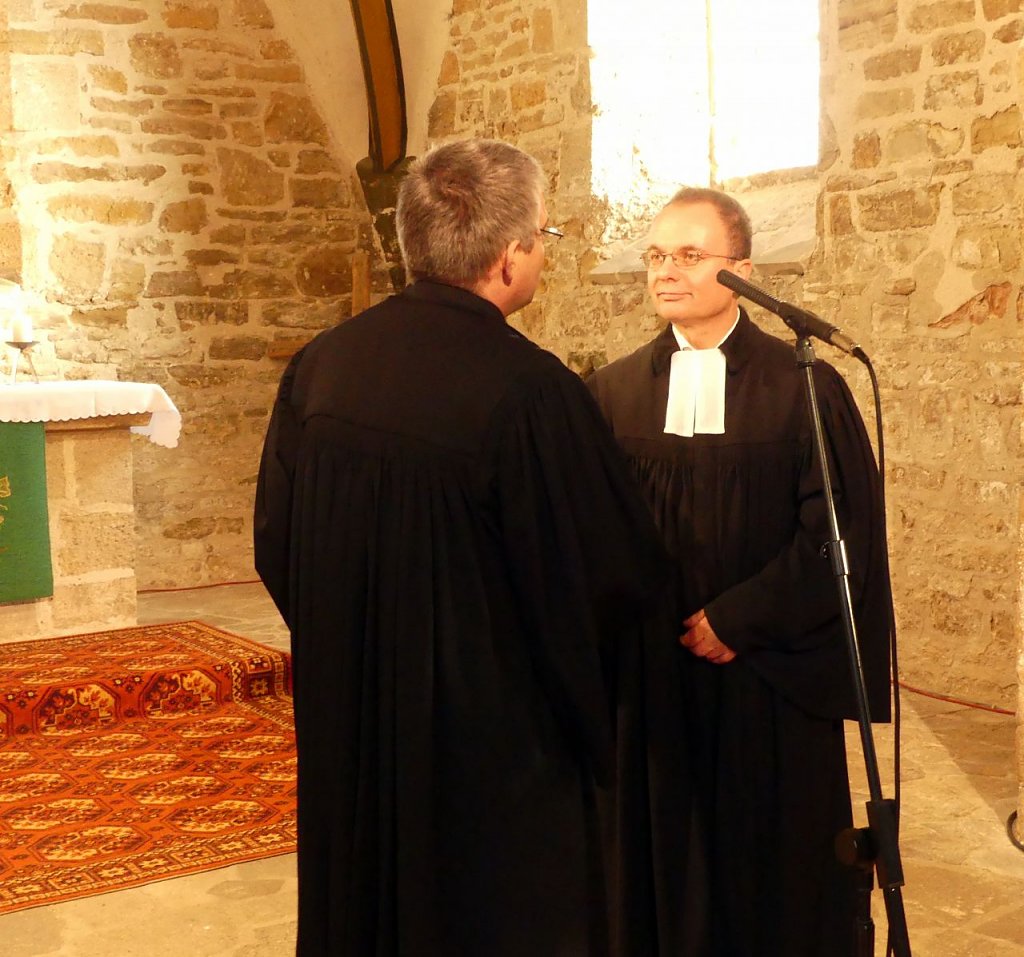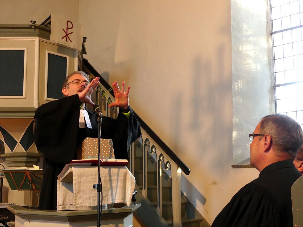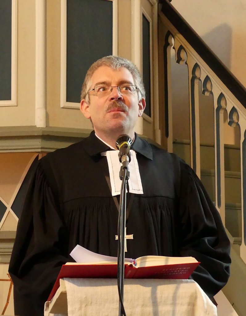 Aber was der Pfarrer seiner Gemeinde mit auf den Weg gegeben hat, das dürfte in ihnen nachhallen. Jeder Abschied sei mit einem Auftrag verbunden. Tschüss, und vergiss nicht den Kasten Wasser und das Brot heute Abend mitzubringen! Mach´s gut und Kopf hoch! Und auch sein Abschied sei für die Gemeinden mit einem Auftrag verbunden. Ihr habt so viele Begabungen, setzt sie ein, dann geht es weiter, dann kann ein neuer Pfarrer einfach mitmachen, ermunterte Lenz die sich schnäuzende Gemeinde. Und was für Gaben in den einzelnen Gemeinden schlummern, das hatte er zuvor liebevoll aufgezählt. Für jede einzelne Gemeinde hatte er eine Besonderheit gefunden, eine besondere Geschichte, die ihn mit ihr verbindet. Da geht einer, der seine Leute ganz genau kennt, der ganz dicht dran ist an seiner Gemeinde.