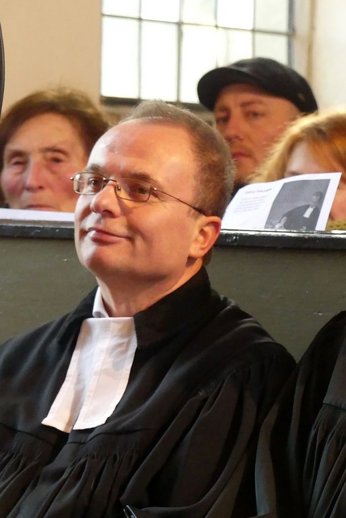 Und so sehr sich Jochen Lenz auch bemühte das Positive überwiegen zu lassen, so sehr zeigte doch sein letzter Gang wie es auch um ihn bestellt ist. Mit dem Gitarrenkoffer in der Hand ging er allein durch den Mittelgang der Kirchentür entgegen. Die versammelte Gottesdienstgemeinde stand und applaudierte. Wen wundert es, dass da der Schritt des Pfarrers seine sonst gewohnte Leichtigkeit vermissen ließ, die Füße schienen so schwer wie das Herz.