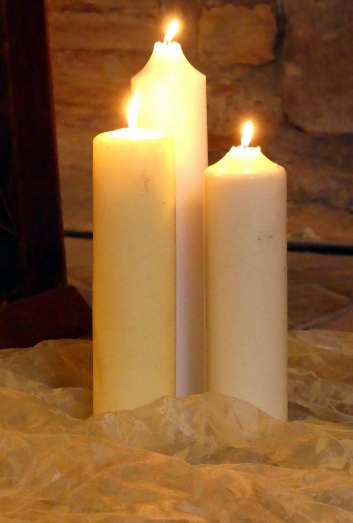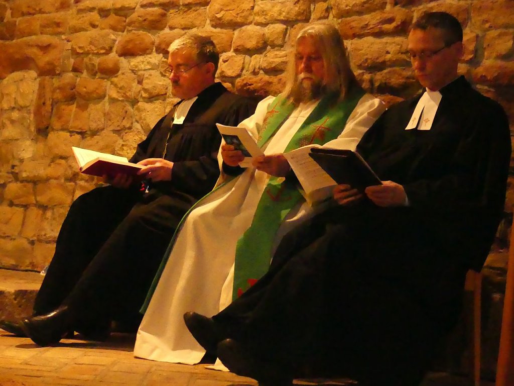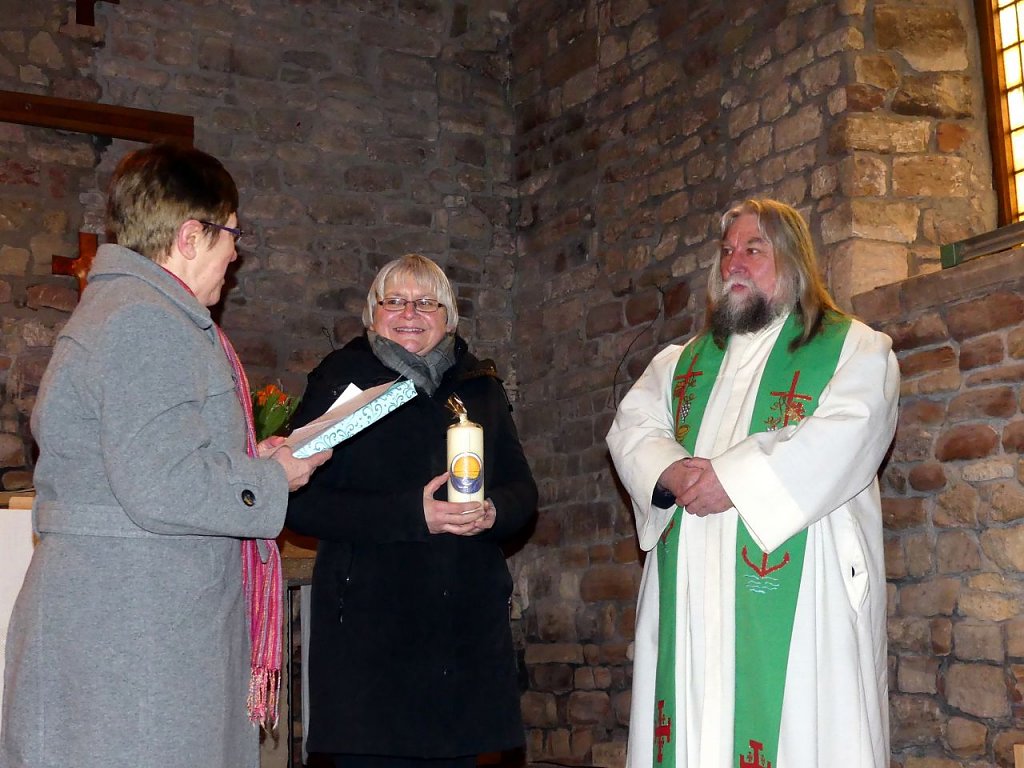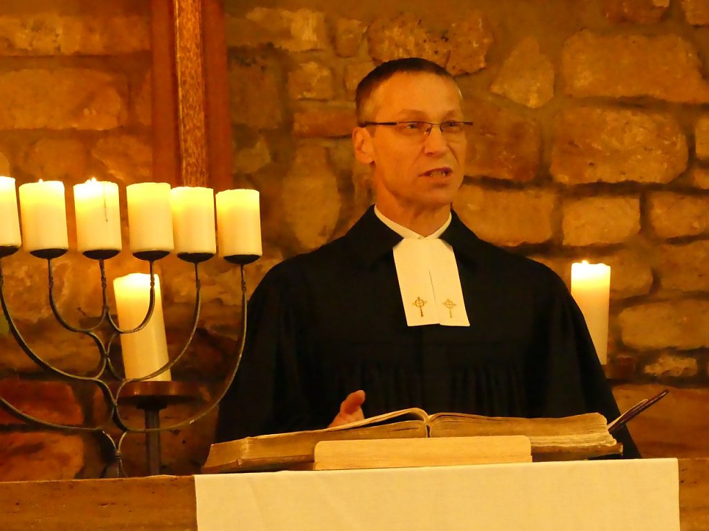 Im Altarraum verteilte Kerzen tauchten den Raum zwar in ein wohliges warmes Licht, konnten die frierenden Füße auf Dauer jedoch nicht überzeugen. Selbst der warm eingehüllten Kantorin Margarita Yeromina sah man nach dem Gottesdienst deutlich an, dass es auch auf der Orgelempore kalt gewesen sein muss. Aber wir wollen uns nicht beschweren, es ist halt Winterzeit.