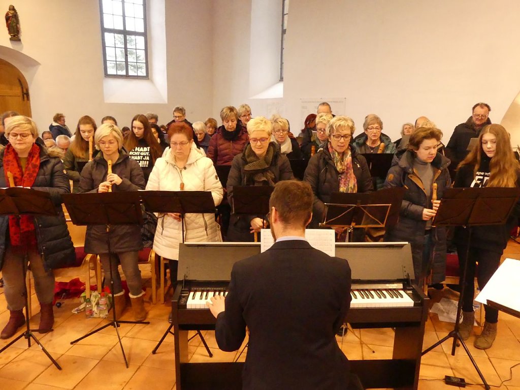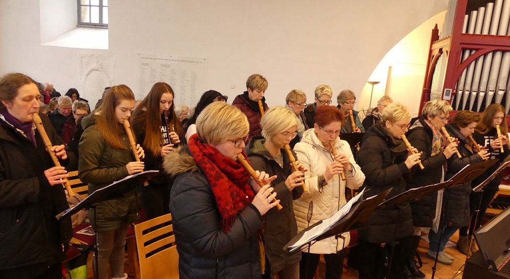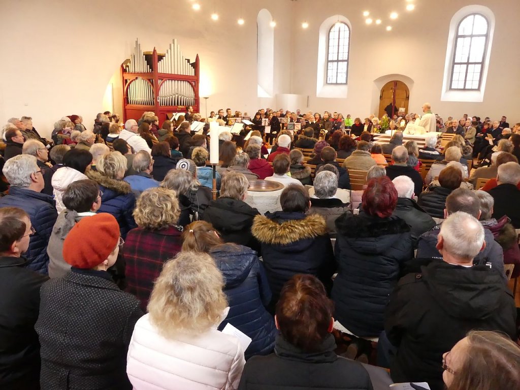 Besonders offensichtlich wurde am Sonntag seine große Liebe zur Kirchenmusik. Rund 20 Bläser und eben so viele Flötenspielerinnen hatten sich zusammengefunden sowie ein Teil der Nordhäuser Kantorei. Unter der Leitung von Kantor Michael Kremzow wurde viel und kraftvoll gesungen, ein Teil der Lieder ist dabei extra für den Tag bearbeitet worden. So hatte der Kantor beispielsweise Sag zum Abschied leise Servus umgetextet und mit der Kantorei uraufgeführt.