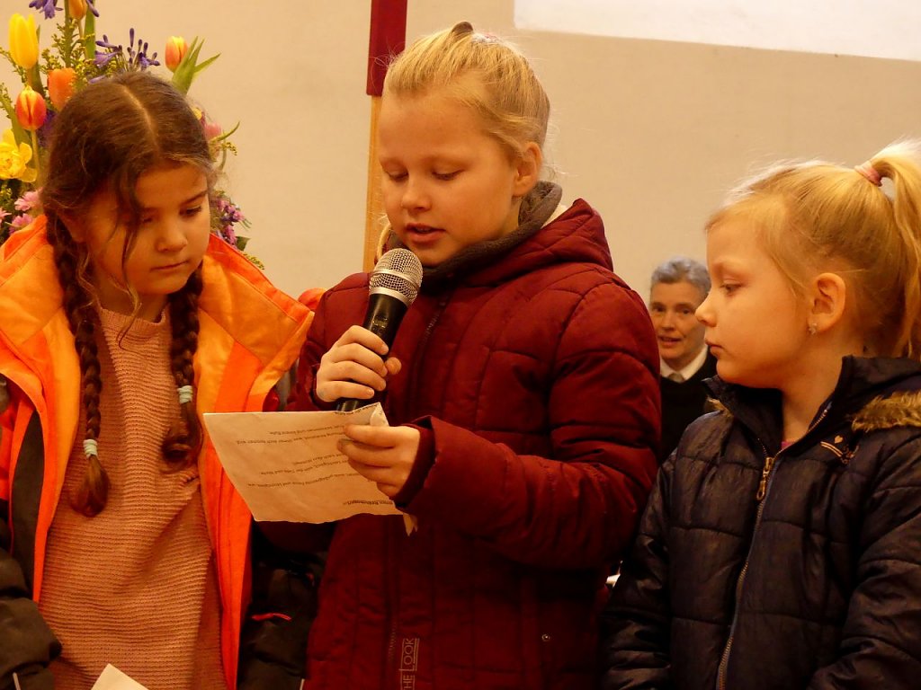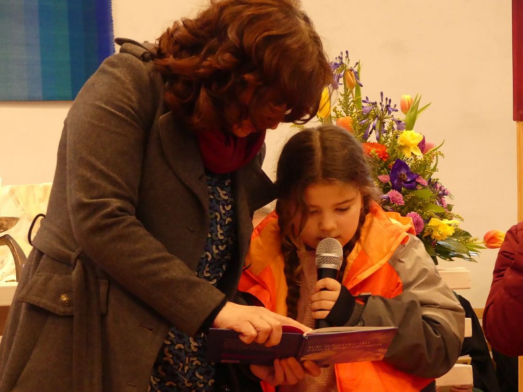 Gemeindepädagogin Kerstin Müller bekam sogar eine ganze bunt beklebte Kiste voller Dankesworte überreicht, die Kinder, Eltern und Kollegen für sie geschrieben haben. In einem kleinen Anspiel schenkten ihr drei Mädchen und Kolleginnen die Farben des Regenbogens. Die fröhlichste Überraschung schien jedoch das Lied zu sein, das Pfarrer Halver für sie umgeschrieben hatte. Das Wandern ist der Kerstin Lust zauberte ihr ein erstes Lächeln ins Gesicht.