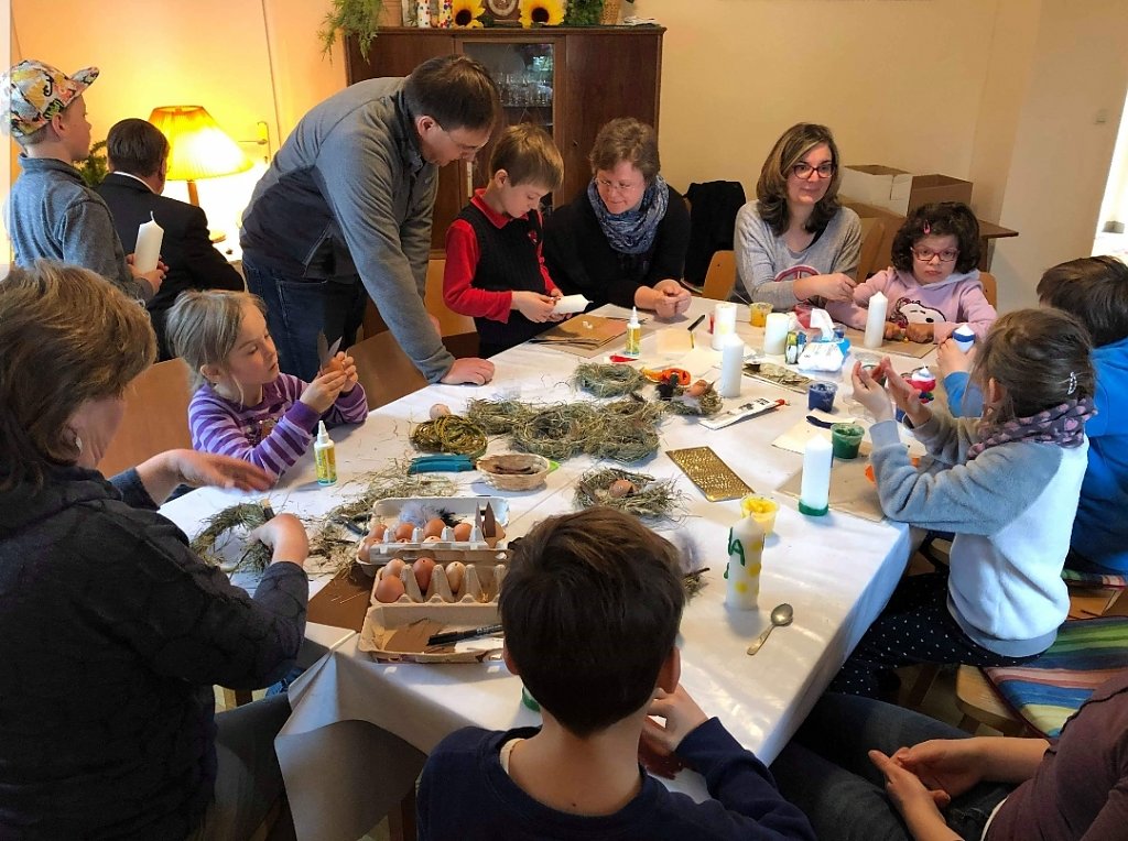 Palmarum in Steigerthal - ab 10:00 Uhr gab es Basteln, Geschichten und Singen rund um Ostern, anschließend wurde gemeinsam zu Mittag gegessen und um 14:00 Uhr begann der Gottesdienst mit anschl. Kaffeetrinken