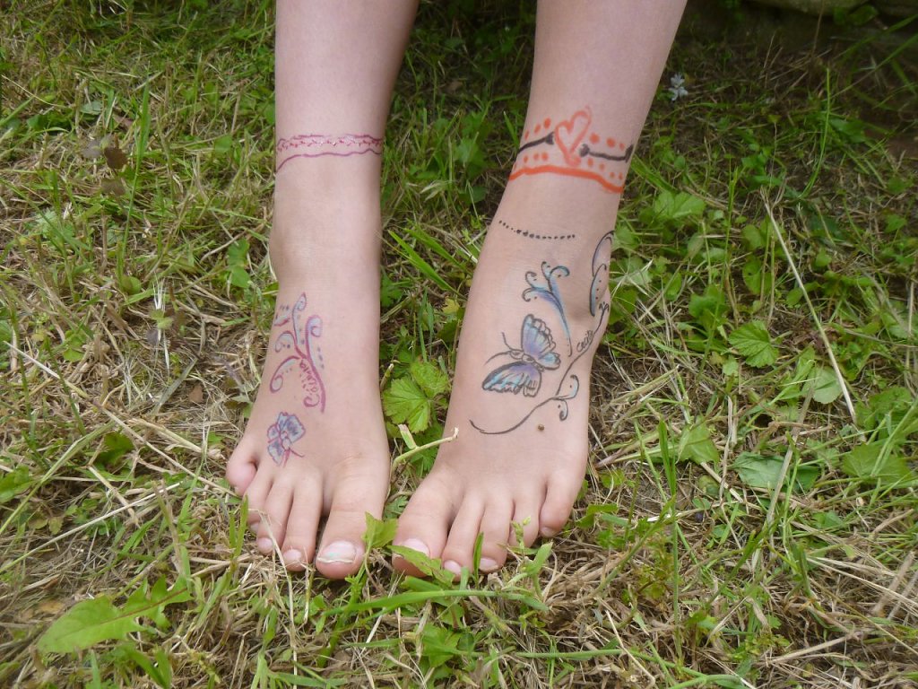 Danach konnten sich alle noch eine Samenkugel herstellen, um unsere Welt ein bischen schöner zu machen... oder durch ein Fuß-Tattoo wieder Lust zum Barfuß-Laufen zu bekommen oder ein Hundertwasser Haus aus alten Tetrapacks zu kreieren. Natürlich gab es auch wunderbaren selbstgebackenen Kuchen und eine gute Versorgung durch die Firma Bolle .